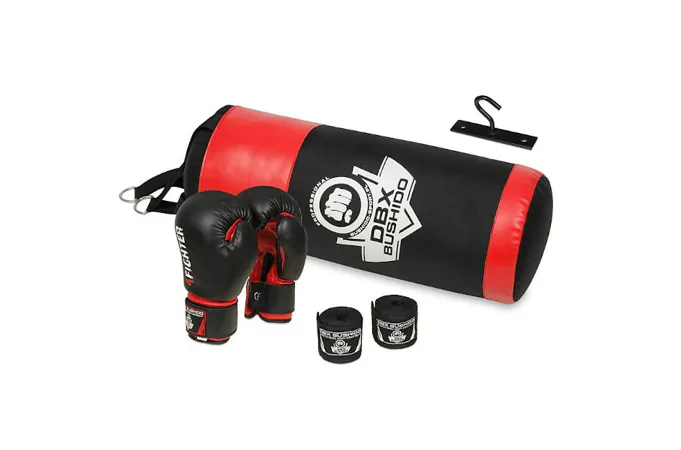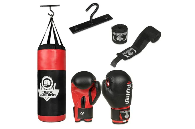 DBX BUSHIDO Kids 60 je ideální startovací sadou pro malé nadšence do boxu ve věku od 4 do 9 let. Sada obsahuje boxovací pytel, držák na boxovací pytel, omotávky a rukavice.Trénink dítěte na boxovacím pytli zlepšuje kondici a koordinaci, posiluje svaly ramen, zajišťuje výdej nadbytečné energie, posiluje sebevědomí a garantuje spoustu zábavy.