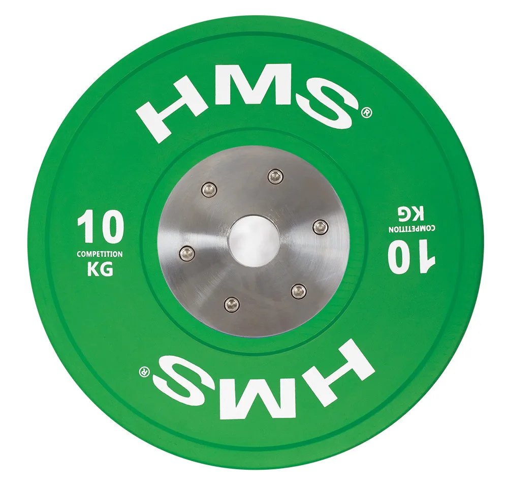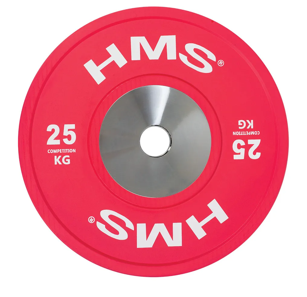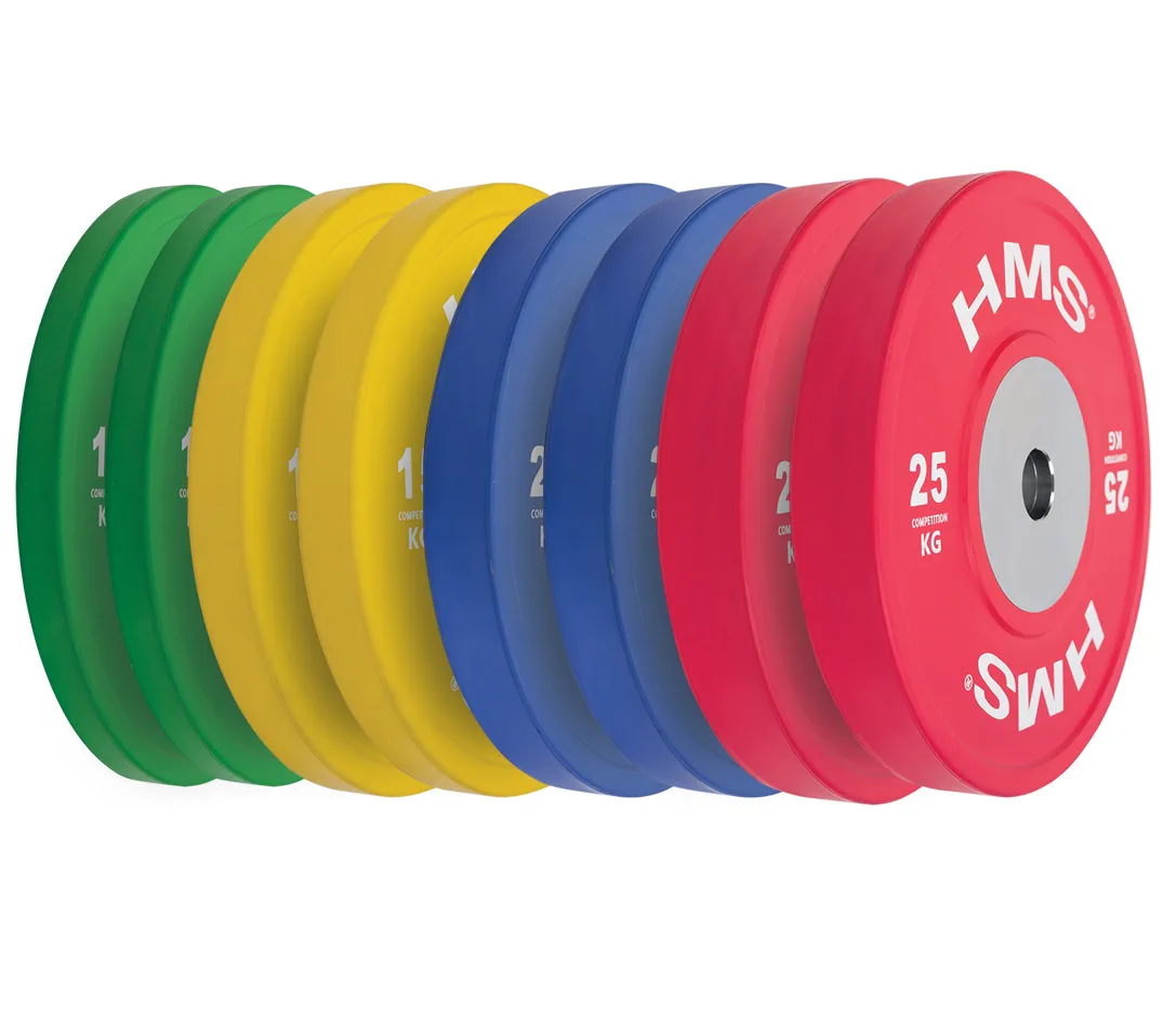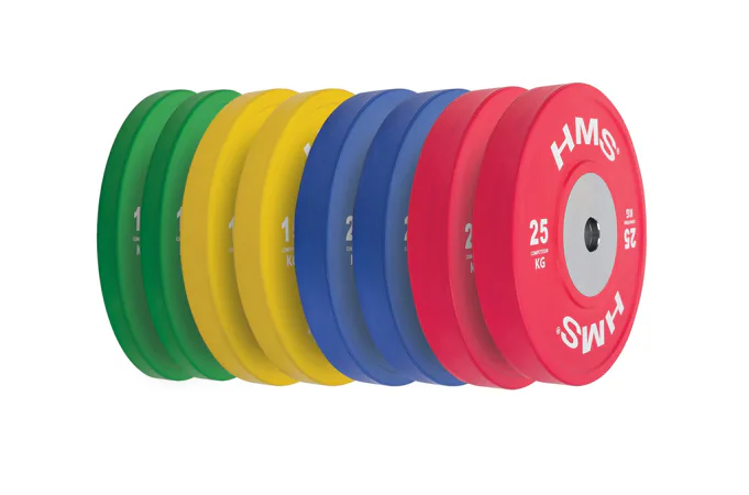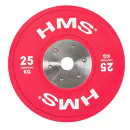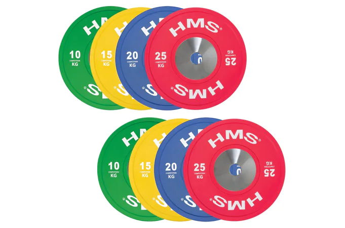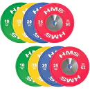 Set olympijských kotoučů HMS vhodný pro závody ve vzpěračství a při funkčním tréninku. Tento set je zbarven přesně podle závodních norem. Jeho hlavním parametrem je odolnost, kdy i po odhodu z velké výšky, zůstane kotouč i podloží bez známky poškození. Kotouč je určen pro olympijské osy s průměrem trnů 50 mm.