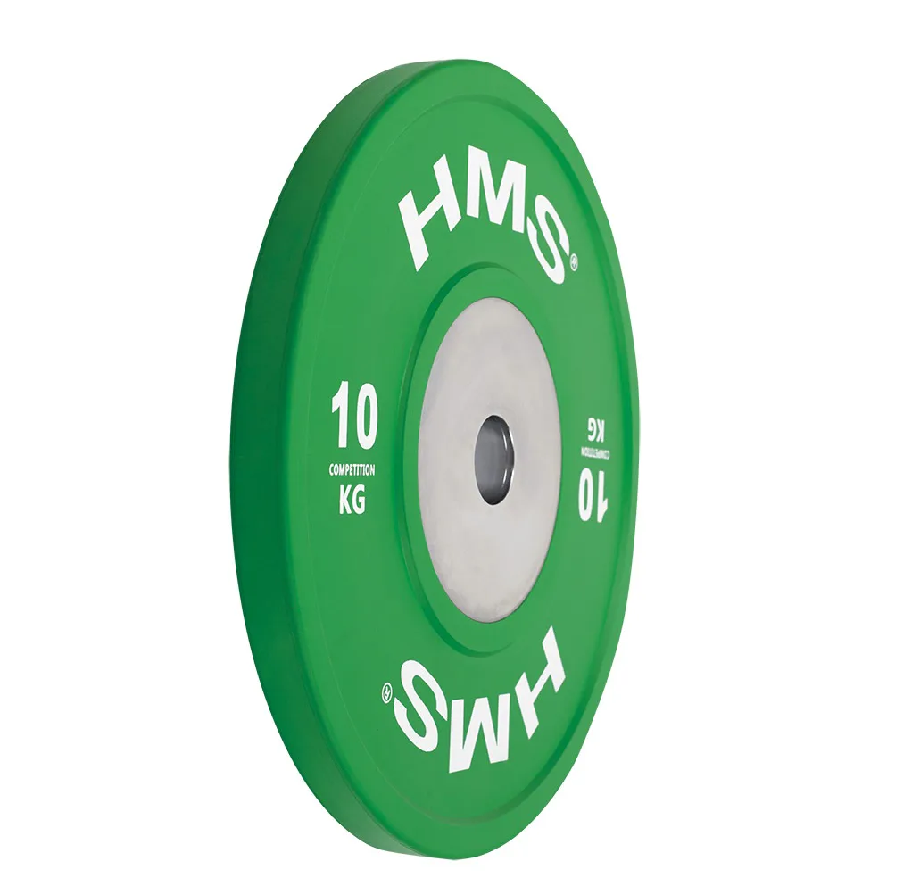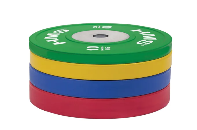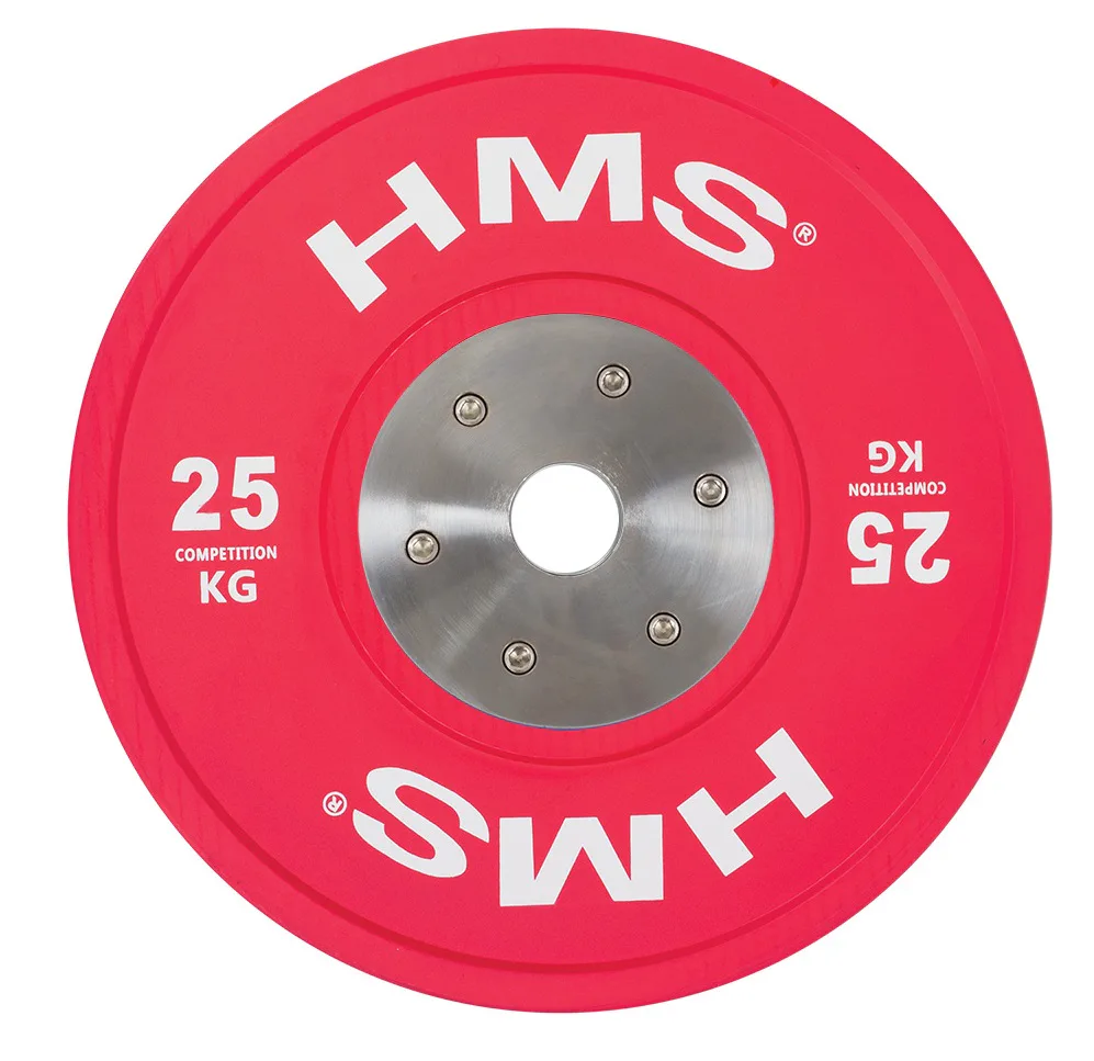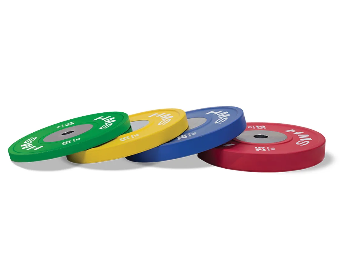Set olympijských kotoučů HMS vhodný pro závody ve vzpěračství a při funkčním tréninku. Tento set je zbarven přesně podle závodních norem. Jeho hlavním parametrem je odolnost, kdy i po odhodu z velké výšky, zůstane kotouč i podloží bez známky poškození. Kotouč je určen pro olympijské osy s průměrem trnů 50 mm.