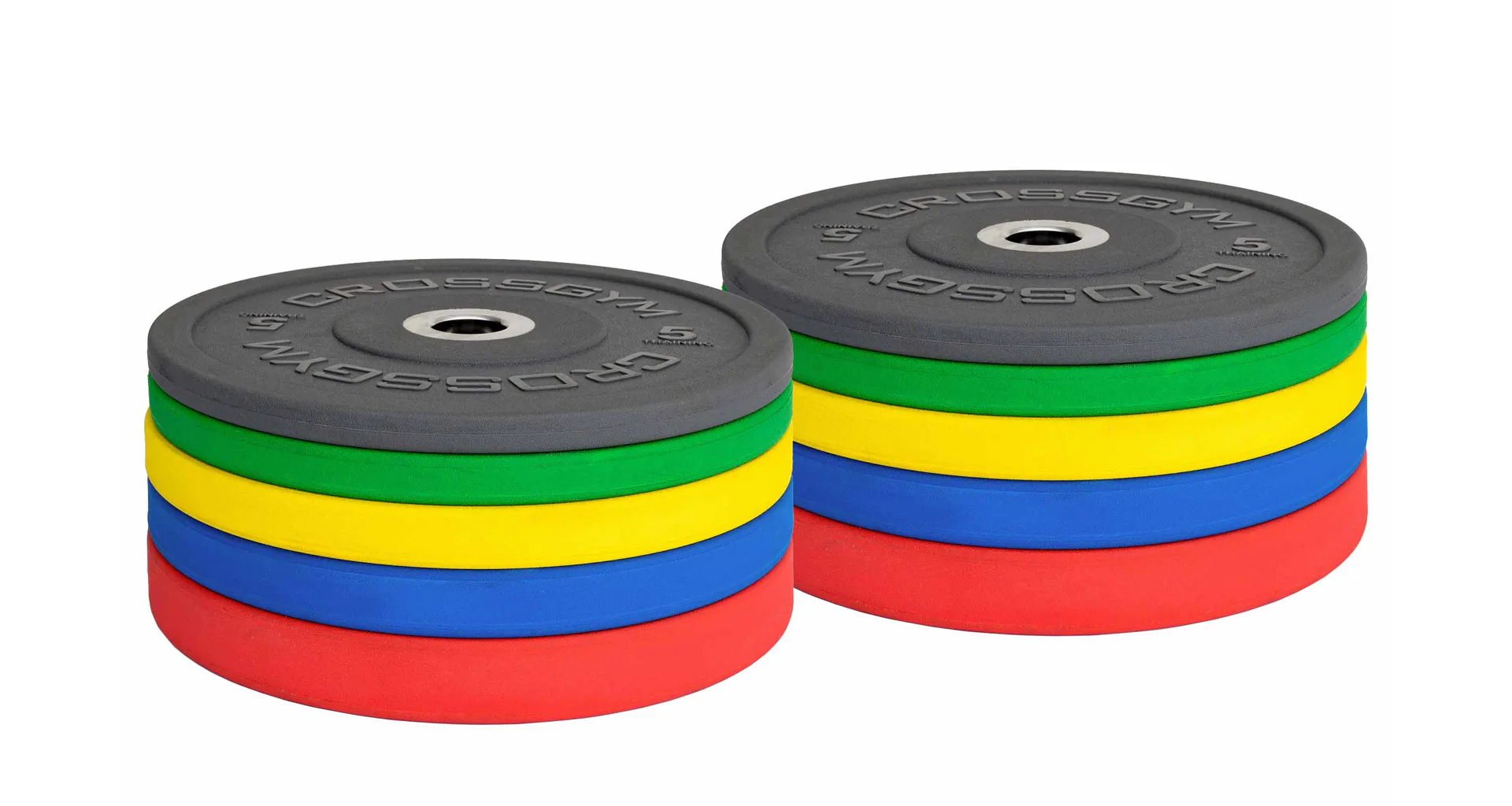 Kotouče BUMPER PLATE CROSSGYM jsou velmi odolné, nárazy zachycující tvrdá směs gumy a PVC má optimální odrazové vlastnosti a oproti dříve vyráběným kotoučům s minimálním obsahem PVC mají vyšší odolnost (složení s minimem PVC způsobovalo že se guma z kotoučů otloukala a docházelo k častému uvolňování středů kotoučů. Na každé straně kotouče je vylisována hmotnost kotouče.