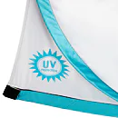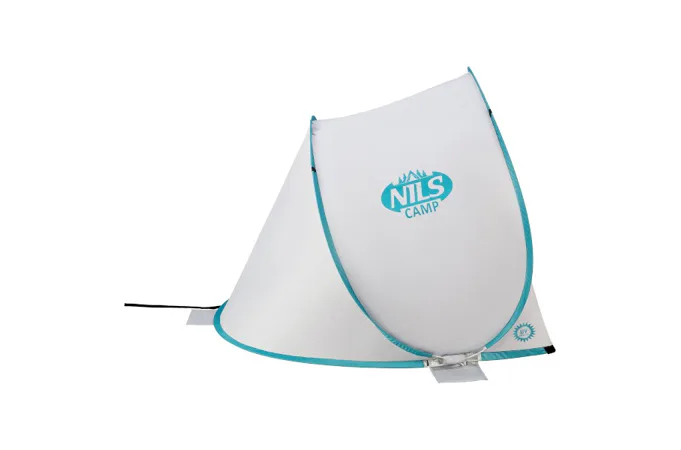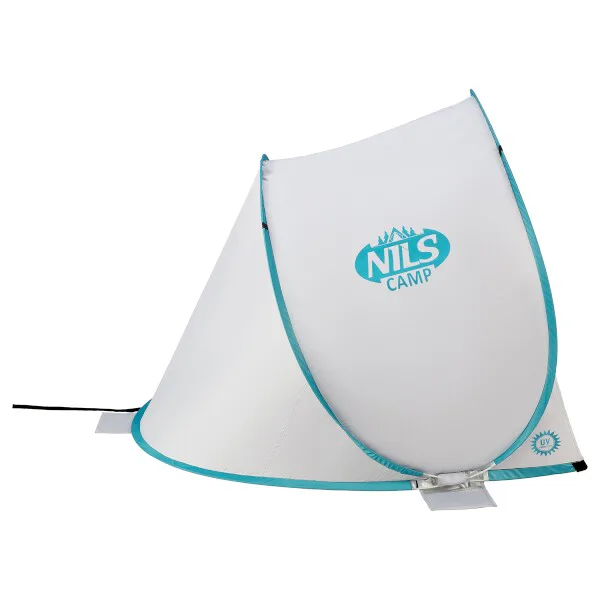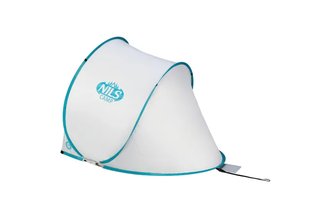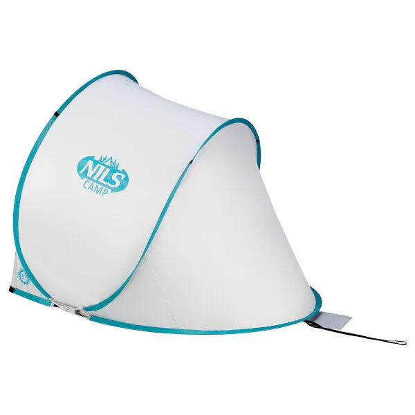 Plážový stan NILS Camp NC3173 využijete nejen během dovolené u moře, ale také na veřejném koupališti, nebo u bazénu na zahradě. Hlavní funkcí plážového stanu je ochrana před slunečními paprsky a škodlivým UV zářením. Model NC3173 odrazí až 96% UV záření. Stan je dodáván složený v kruhové tašce opatřené uchem pro snadné přenášení. Po vytažení z tašky se stan automaticky rozloží. Pro složení se použije jednoduché gesto a stan se schová opět do tašky. Podlaha o rozměrech 140 x 110 cm a výška 110 cm umožňují úkryt před sluncem jak dětem, tak rodičům. Podpůrná konstrukce přístřešku je tvořena sklo-laminátovou tyčí. Na ni je navlečena polyesterová plachta. Použitý materiál odolá i malé, dešťové přeháňce.