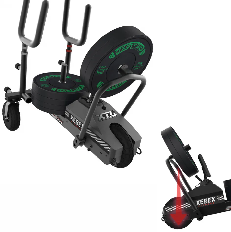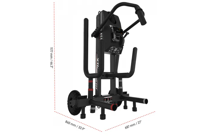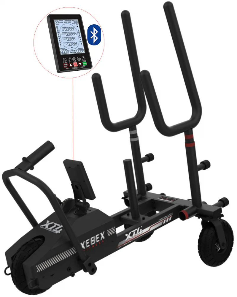 Saně XEBEX XT4 Sled + HIIT console Smart connect je inovativní posilovací pomůcka, která je populární především v crossfitu, bojových a silových sportech, která nesmí chybět v žádné moderní posilovně, či tréninkovém centru – vydrží i ty nejintenzivnější tréninky. Tyto saně od XEBEX jsou speciální tím, že se pohybují na třech robustních kolech a mají nastavitelný magnetický odpor.