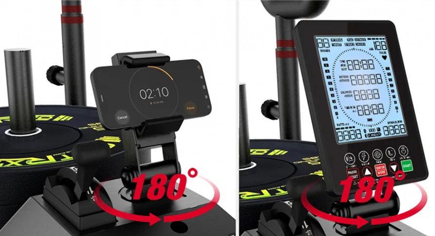 Součástí stroje je také LCD displej, který vám zobrazí základní údaje o tréninku. Díky bluetooth připojení můžete spárovat trenažer XEBEX k vašemu tabletu, nebo smartphonu a používat tak při tréninku různé aplikace. Tepovou frekvenci lze měřit pomocí hrudního pásu, který není součástí balení.