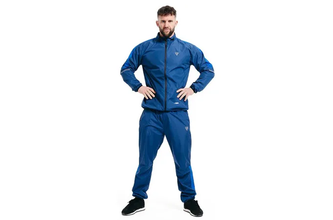 Rukávy a nohavice obleku jsou zakončeny elastickými manžetami, které efektivně zadržují teplo uvnitř obleku. To zajišťuje, že se tělo rychleji zahřeje a zvýší se tak intenzita pocení. Kromě toho je střih obleku navržen tak, aby umožňoval volnost pohybu – hodí se tedy jak pro běžecký trénink, tak pro cvičení v posilovně nebo pro funkční tréninky.