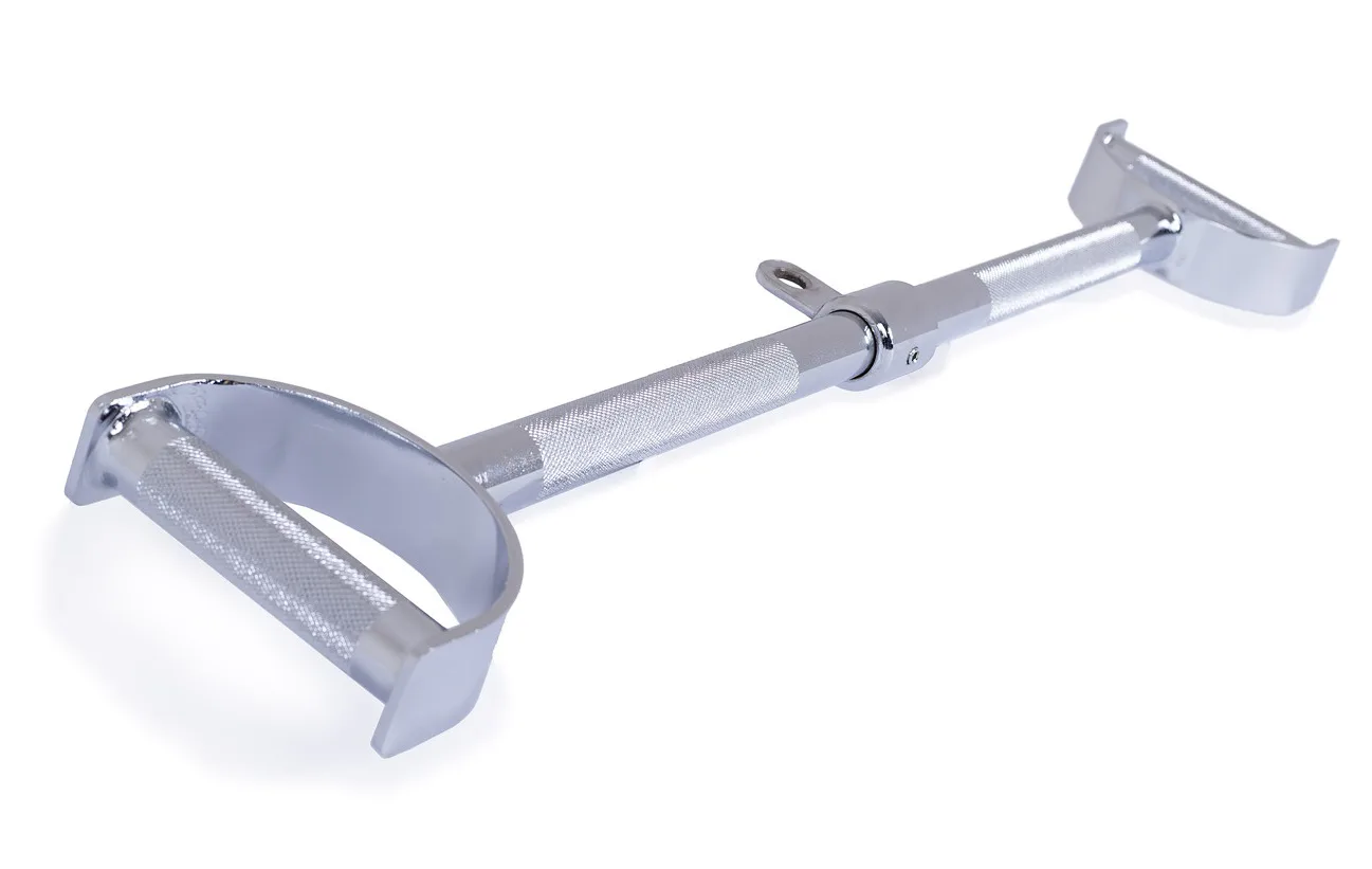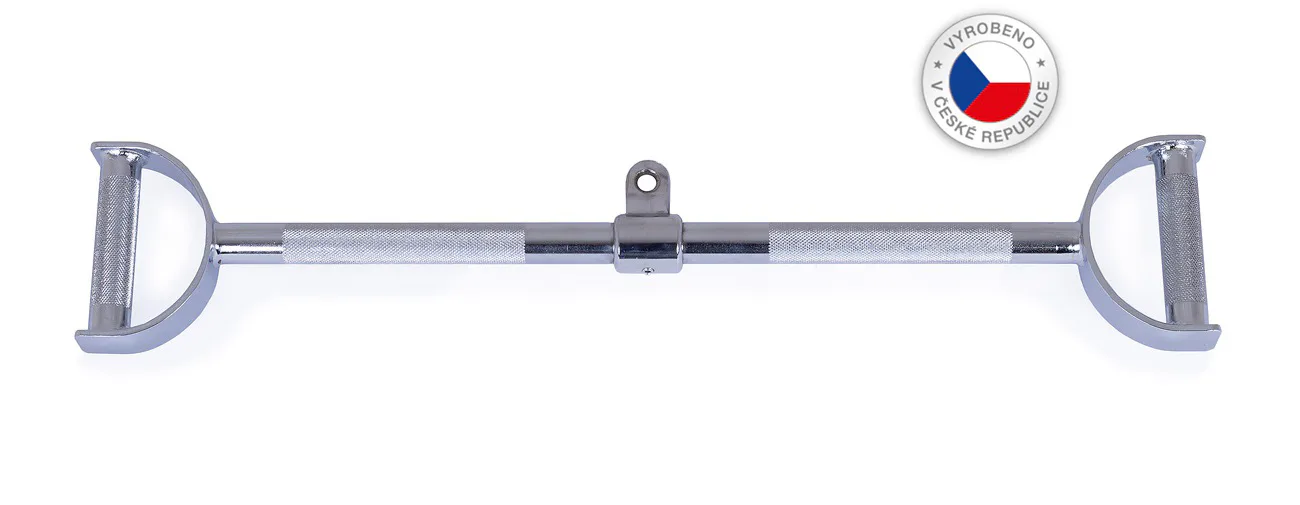 FITHAM Adaptér na horní kladku paralelní otočný CS je možný pevně uchopit na několika místech, čímž vzniká široké spektrum cviků pro začátečníky i pokročilé sportovce. Je vyroben z velmi kvalitního materiálu s povrchovou chromovou úpravou a otočným závěsným pouzdrem.