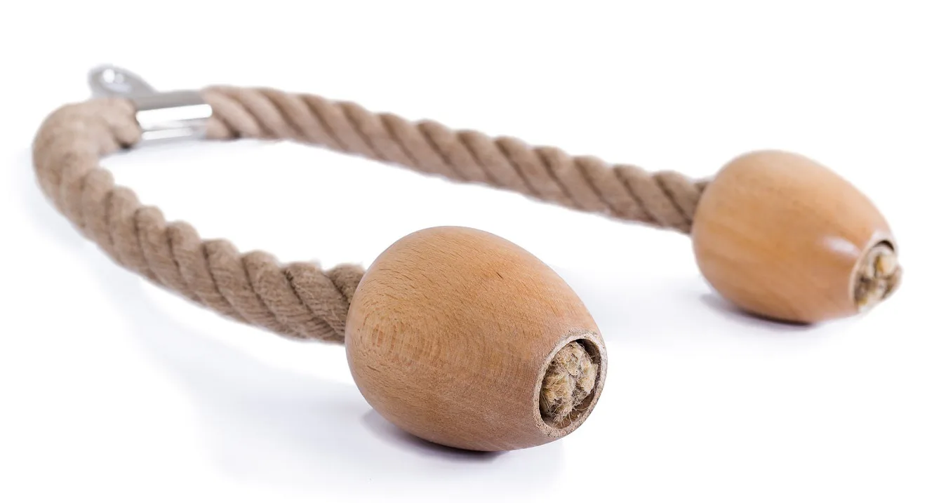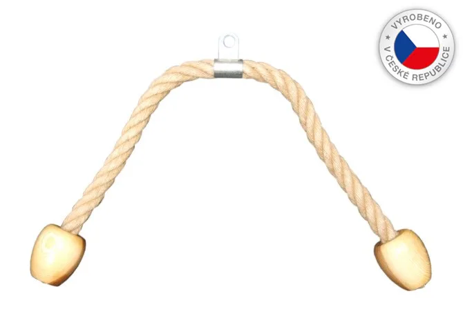 FITHAM lanový adaptér na triceps CS je pomůcka pro kladkové stroje, která umožňuje metodu procvičení tricepsů, bicepsů a břicha. Lano je na obou koncích opatřeno velkými dřevěnými koncovkami sloužícími jako dorazy pro ruce během cvičení. Lano je vyrobeno z konopného materiálu s dlouhou životností. S tímto adaptérem lze procvičovat břišní svaly, bicepsy, přední a boční deltové svaly a mnoho dalších svalových oblastí.