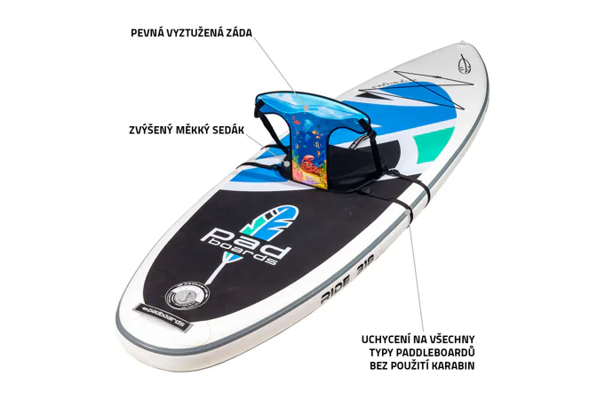Sedačka pro paddleboard YATE MIDI, je univerzální sedačka pro všechny typy paddleboardů. Jedná se o odlehčené ekonomické provedení komfortního modelu MAXIM. Tato sedačka umožňuje praktické upevnění k paddleboardu BEZ POUŽITÍ KARABIN - prkno nemusí být vybaveno upínacími oky. Díky tomu je použitelná na všechny typy paddleboardů včetně jógových, která obvykle oka nemají. S variabilním uchycením se může sedačka umístit v libovolné části prkna a tento systém také umožňuje UMÍSTĚNÍ VÍCE SEDAČEK NA JEDNOM paddleboardu. Zpevněná opěra zad umožňuje pohodlné sezení a nesklápí se. Zvýšený sedák zajišťuje větší pohodlí.