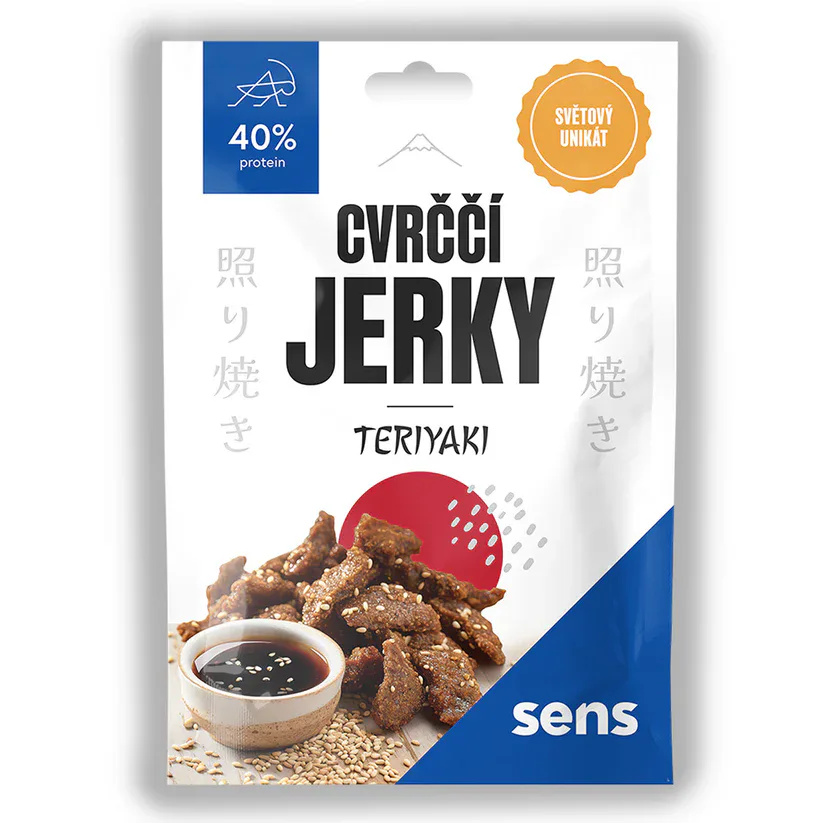 SENS Cvrččí Jerky od české firmy. Světově unikátní hmyzí jerky s vysokým obsahem bílkovin výtečně chutná a dodá energii při jakékoliv aktivitě. Obsah balení 25 g.