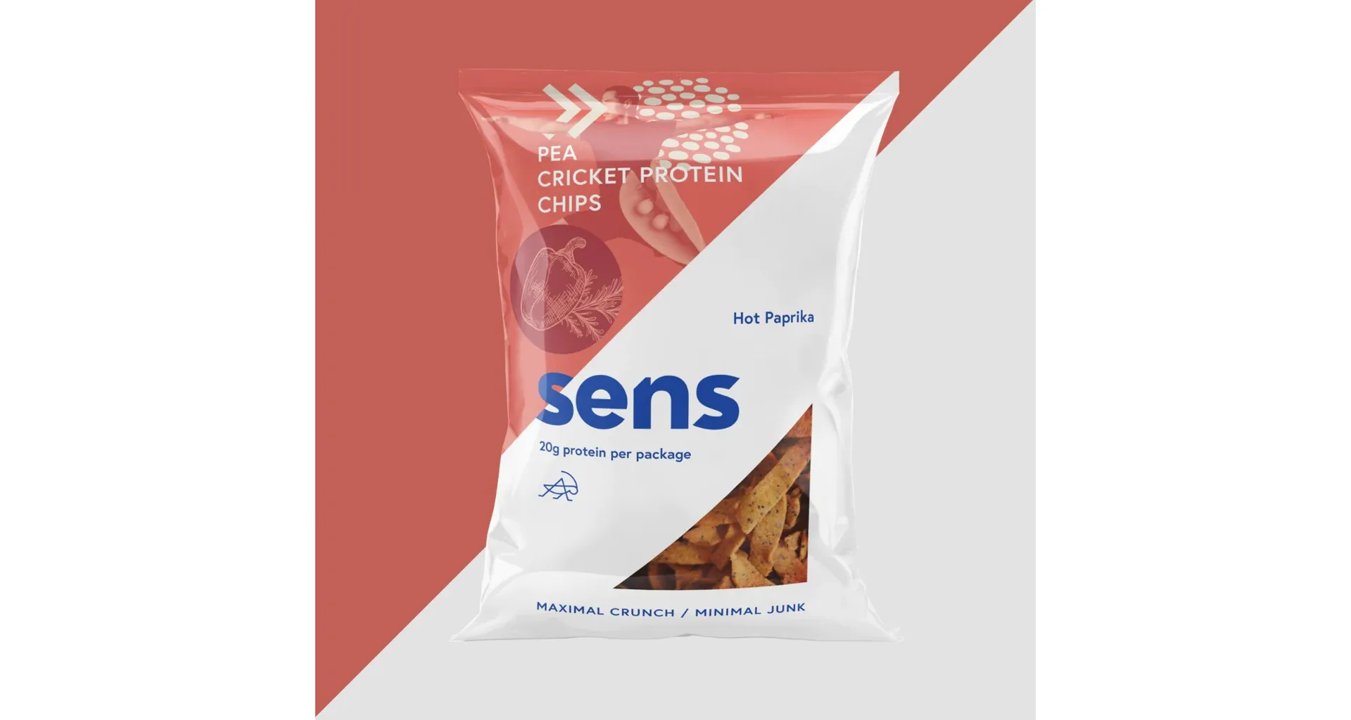 Složení proteinové chipsy (Horká paprika): hrachová mouka (75%), cvrččí mouka (Acheta domesticus) (10%), chilli paprika (4,7%), slunečnicový olej, červená řepa, saturejka, česnek, bazalka, pepř, oregano, tymián, bramborový škrob, kvasničný extrakt, sůl.