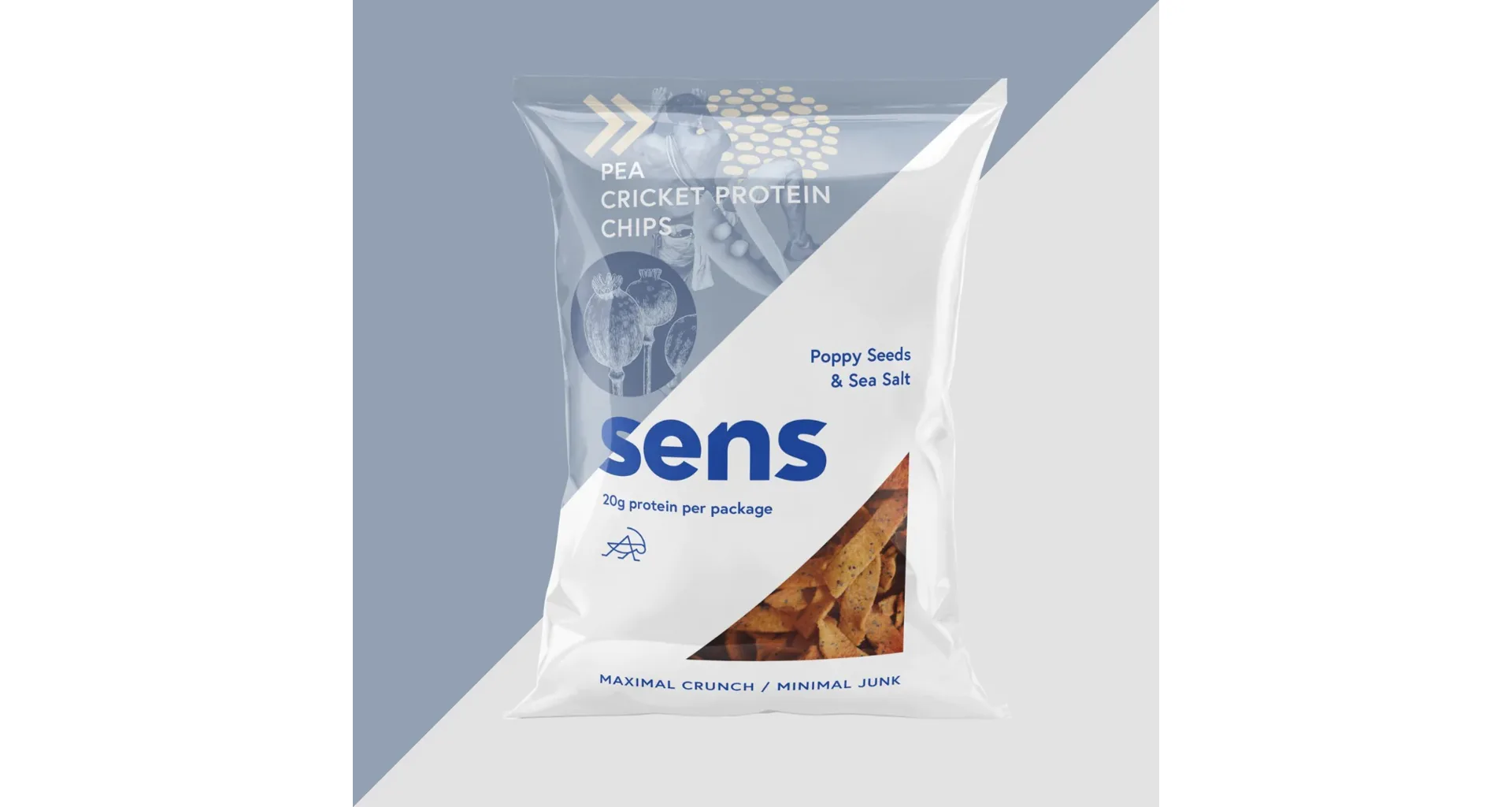 Složení proteinové chipsy (Maková semínka): hrachová mouka (76%), cvrččí mouka (Acheta domesticus) (10%), mák (7%), slunečnicový olej, kukuřičná mouka, mořská sůl, karotka, cibule, kvasničný extrakt, petržel, směs koření.
