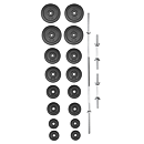 Činkové sady s dovětkem "XL" obsahují prodlouženou délku osy 2200 mm a jsou prioritně určeny pro stojany a lavice se standardní roztečí stojanů okolo 100-110 cm. V naší nabídce najdete též činkové sety pro užší stojany s délkou osy 1600 mm.