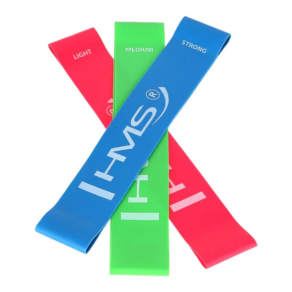 Set 3 krátkých posilovacích gum HMS GU04 jež jsou využívany v silovém tréninku, kondičním tréninku, ale i v rehabilitačním cvičení. V silovém tréninku slouží jako dopomoc nebo jako dynamická zátěž. Při rehabilitaci jsou využité především po úrazech svalů, šlach a kloubů.