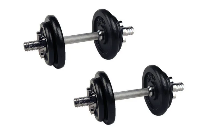 Sada obsahuje 2 kusy činky o váze 10 kg (celkem 20 kg) ve složení: