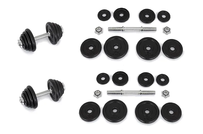 Sada obsahuje 2 kusy činky o váze 15 kg (celkem 30 kg) ve složení: