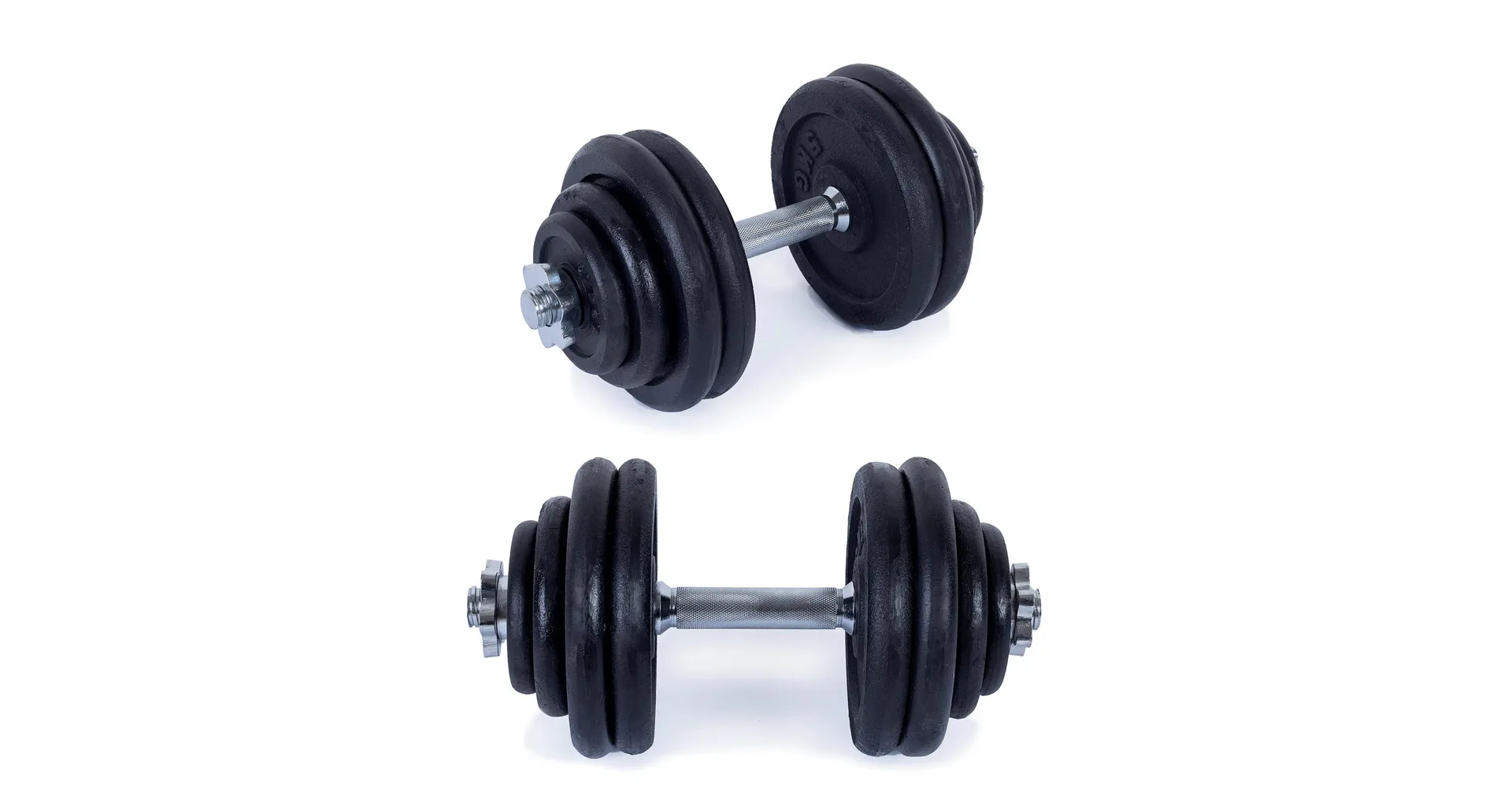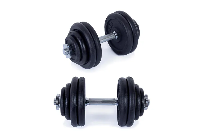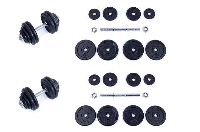 Sada obsahuje 2 kusy činky o váze 30 kg (celkem 60 kg) ve složení: