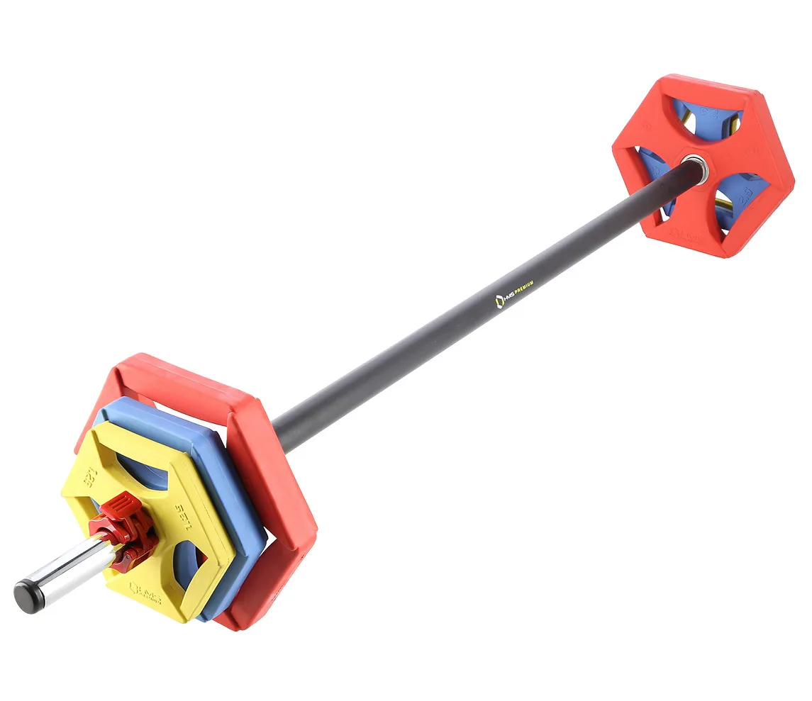 HMS Premium SBP21 je sada pro body pump - dynamické cvičení s nízkou váhou - a využijete ji jak při skupinovém tréninku, tak při domácím cvičení například u televize. Sadu tvoří obouruční osa, která má úchopovou část potaženu měkkou pěnou, která zajišťuje pevný úchop a odvádí pot. Sada tří párů kotoučů vyrobených z litiny pokryté vrstvou gumy, která chrání podlahu i kotouče před poškozením a 2 uzávěry pro zajištění kotoučů na ose. Samotné kotouče mají tvar šestiúhelníku, takže se činka po odložení neodvalí. Otvory v kotoučích slouží jako madla a lze je tak použít i samostatně k funkčnímu tréninku.