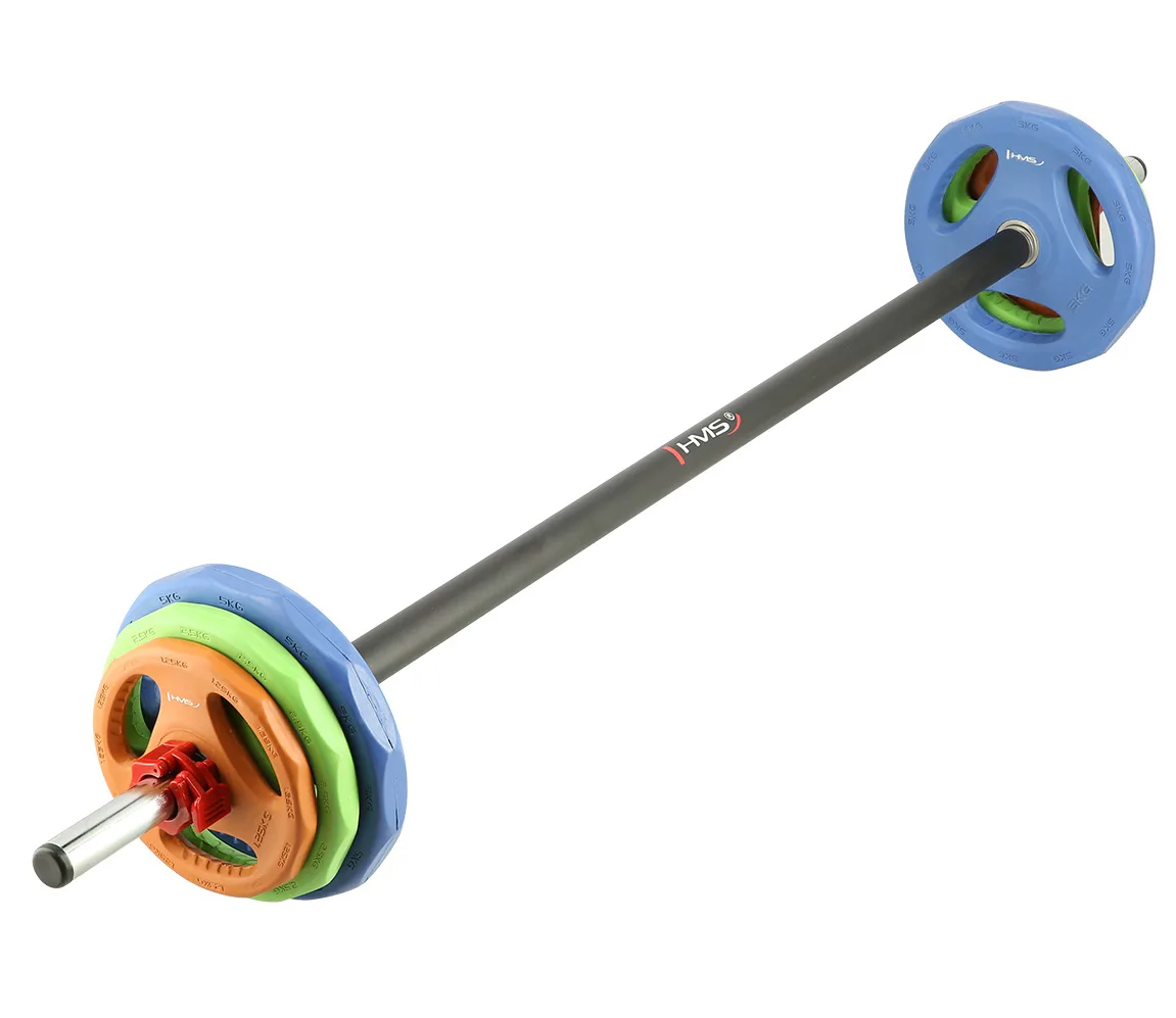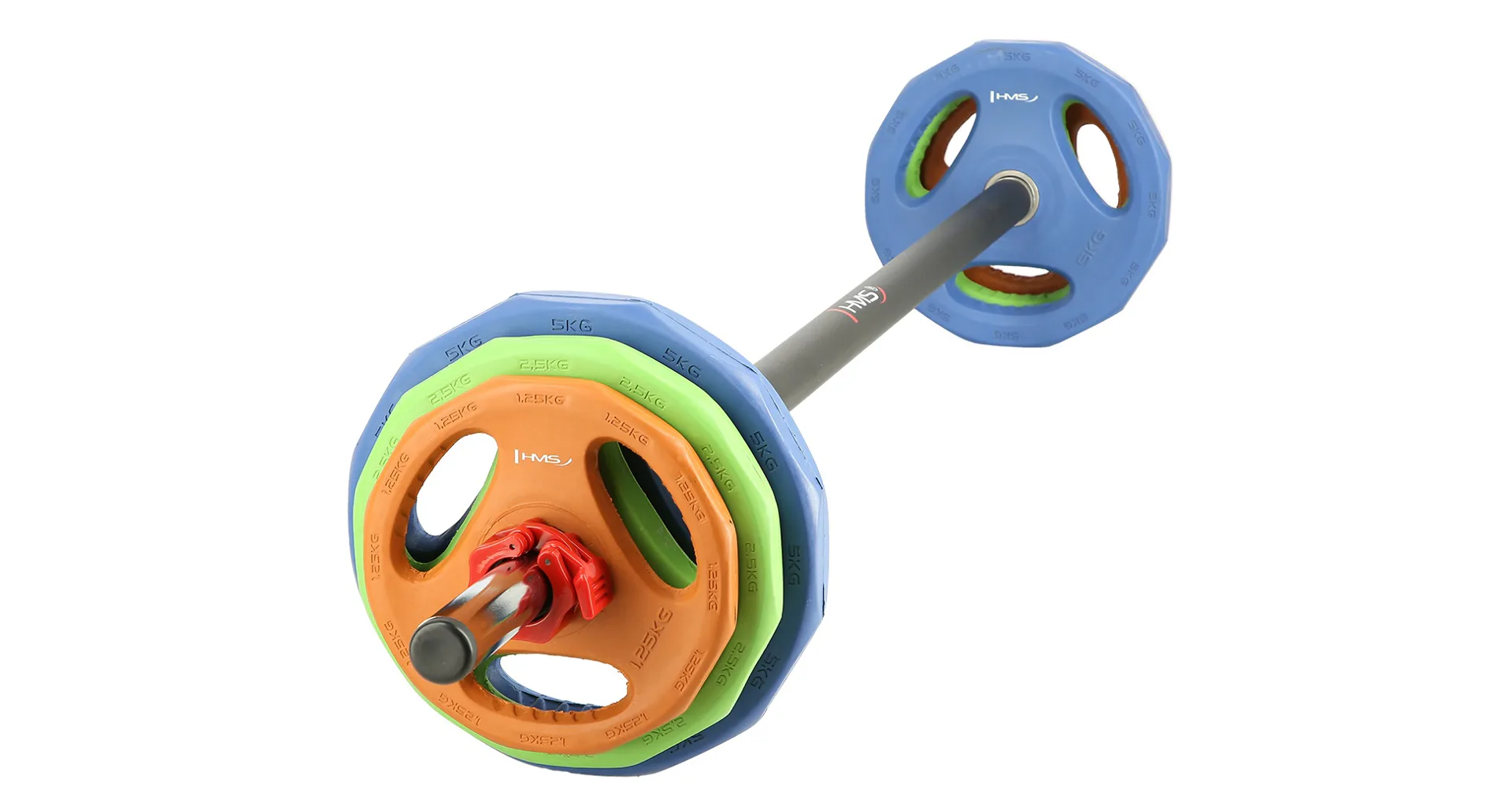 HMS SBP22 je sada pro body pump - dynamické cvičení s nízkou váhou - a využijete ji jak při skupinovém tréninku, tak při domácím cvičení například u televize.Sadu tvoří obouruční osa, která má úchopovou část potaženu měkkou pěnou, která zajišťuje pevný úchop a odvádí pot. Sada tří párů kotoučů vyrobených z litiny pokryté vrstvou gumy, která chrání podlahu i kotouče před poškozením a 2 uzávěry pro zajištění kotoučů na ose. Samotné kotouče mají tvar dvanáctiúhelníku, takže se činka po odložení neodvalí. Otvory v kotoučích slouží jako madla a lze je tak použít i samostatně k funkčnímu tréninku.