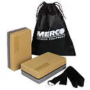 Yoga Max MERCO je praktická sada pro každého nadšence do jógy či pilates. Sada se skládá ze dvou kostek z EVA pěny a jednoho protahovacího pásu z bavlny. Dvoubarevné pěnové kostky mají rozměr 22,5 x 15 x 7,5 cm. Pás má délku 180 cm, šířku 3,8 cm a je zakončený dvojitou chromovanou přezkou, která drží pás na požadované délce.