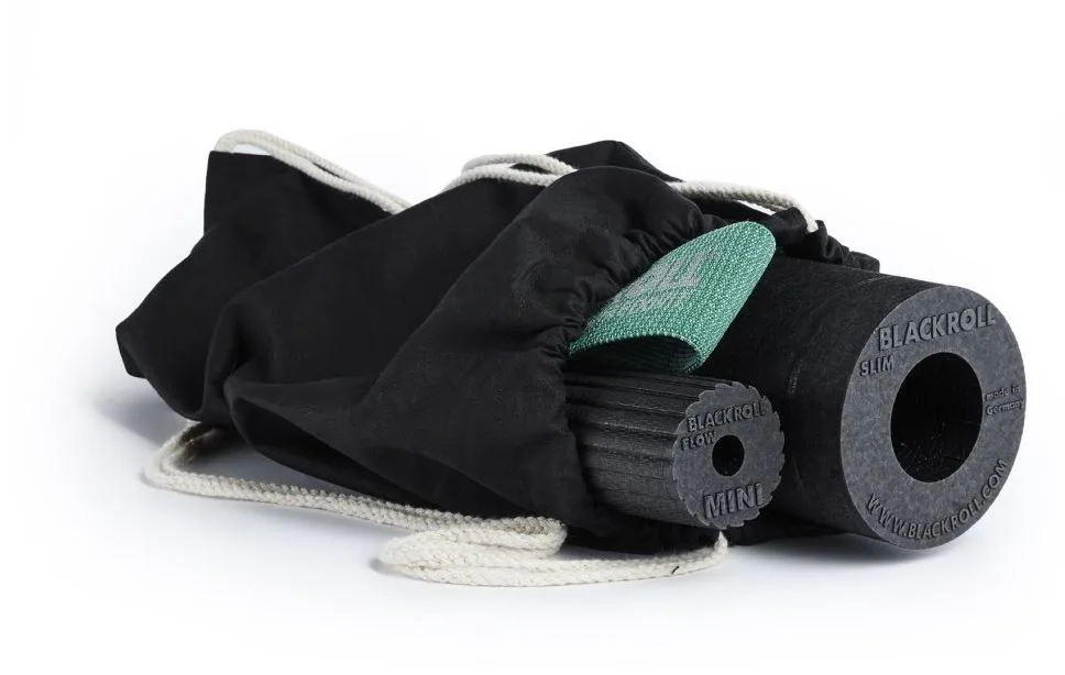 BLACKROLL® MINI FLOW je díky svému strukturovanému povrchu a malým rozměrům ideální pro zahřátí, aktivaci a stimulaci krevního oběhu. BLACKROLL® SLIM je vhodný pro myofasciální automasáž nohou a zádových svalů. Všechny nástroje jsou lehké a zaberou opravdu málo místa. Díky praktickému batůžku je můžete mít vždy s sebou.