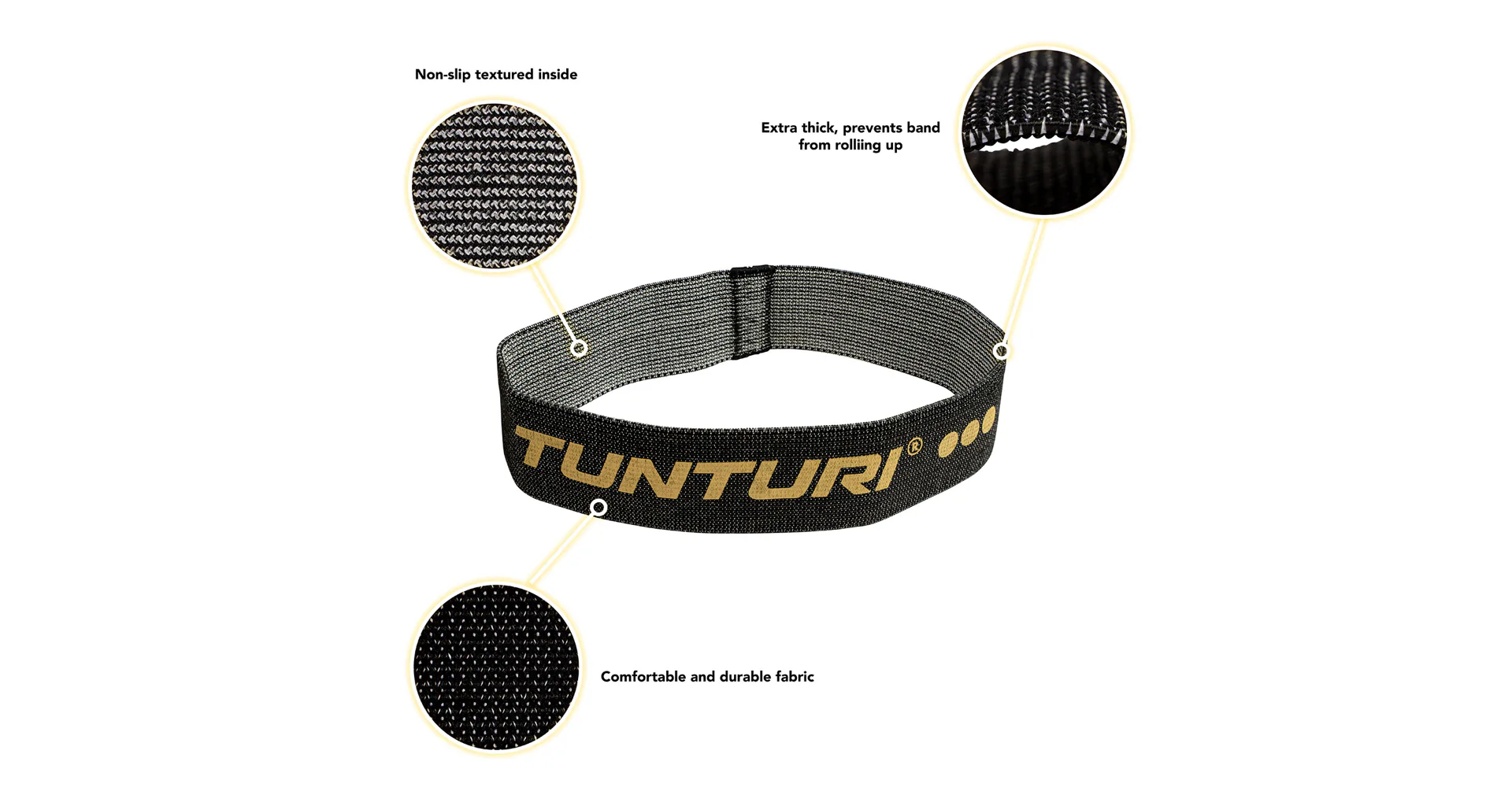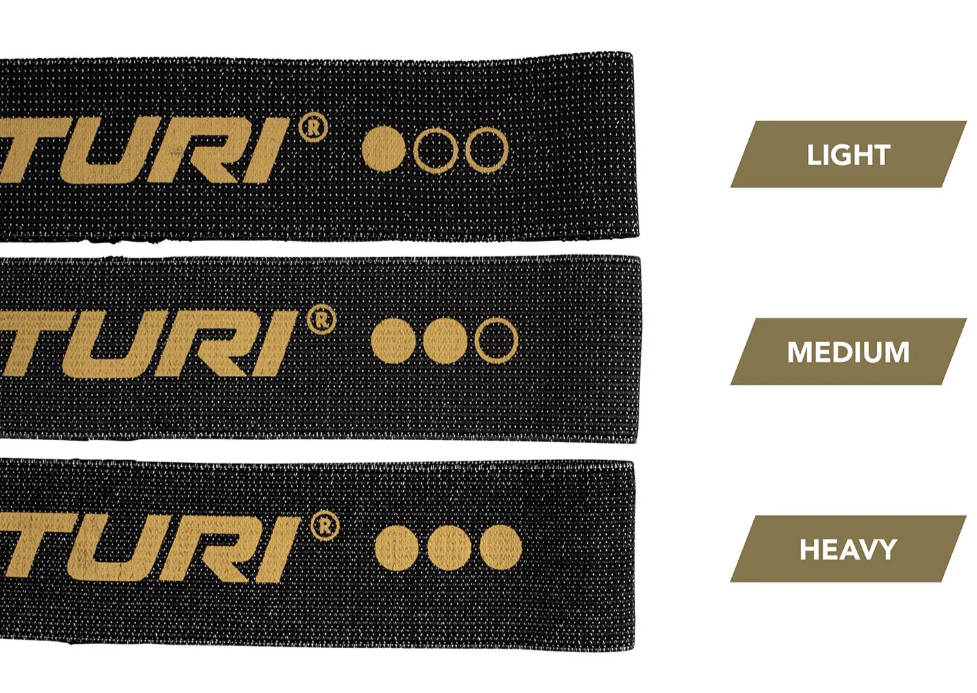 Set textilních odporových gum TUNTURI Centuri. Začněte doma cvičit se setem textilních odporových gum TUNTURI Centuri pro efektivní a kompletní trénink. Odporový guma je šikovná, skladná a všestranná tréninková pomůcka vhodná pro procvičení celého těla. Sestava je ideální pro postupné budování odporu a svalové zátěže v tréninku. Úrovně odporu jsou snadno rozpoznatelné podle počtu bodů. Odporový pás můžete použít jako rozcvičku, k regeneraci, rehabilitaci nebo ke zlepšení svalové síly.