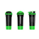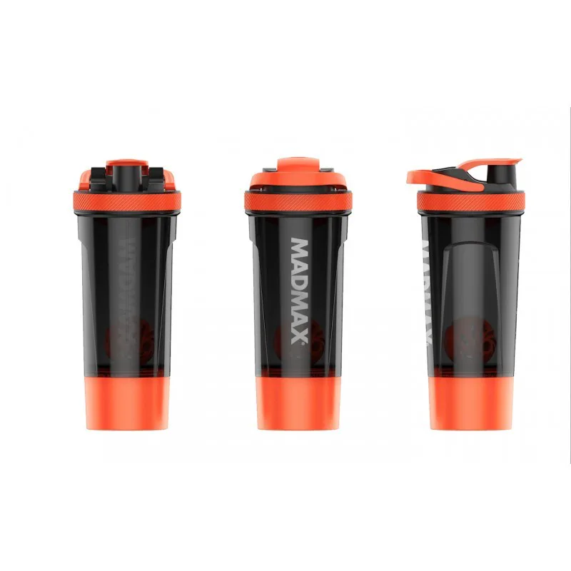 Shaker MADMAX se pyšní především svými skvělými vlastnostmi a kvalitou. Uvnitř shakeru nechybí sítko a speciálně tvarovaná kulička, která napomáhá lepšímu rozmíchání nápoje. K balení je přiložena nádoba na prášek nebo tablety, kterou v případě potřeby jednoduše přišroubujete ke dnu šejkru.Je vyroben z polypropylenu, proto Vám můžeme zaručit, že nedochází k přenosu žádných škodlivých látek, zápachu ani umělé chuti do Vašeho nápoje, jak je to u levných konkurenčních výrobků naprosto běžné.