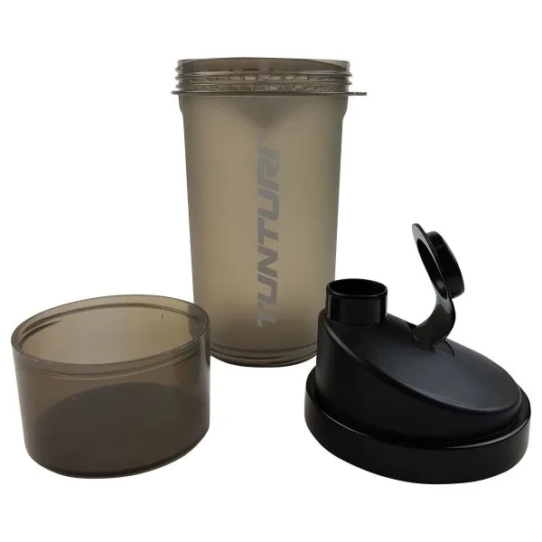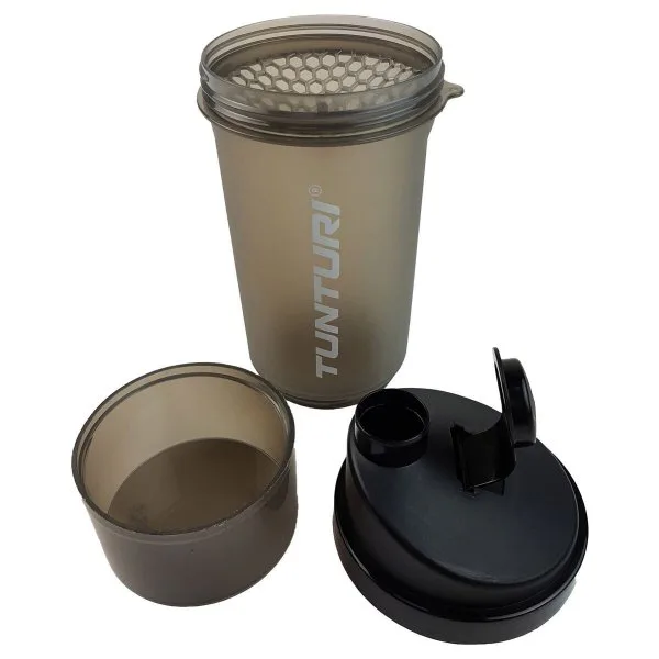 Shaker TUNTURI 600 ml se zásobníkem je praktický šejkr pro přípravu koktejlů se šroubovacím uzávěrem a zaklapávacím víčkem. Obsahuje mřížku, která zajistí kvalitní promíchání koktejlu. Při výrobě uzávěru a víčka byl použit měkčí typ plastu. Výsledkem je 100 % těsnost, tato jedinečná inovace zcela zabraňuje pronikání vody. Sítko je kuželovitého tvaru, které vícenásobně zvyšuje účinnost míchání. Vyšší účinnost je dosáhnutá díky většímu povrchu sítka a tedy i většímu přítoku tekutiny skrz sítko.