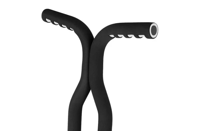 Ocelový rám garantuje nosnost 70 kilogramů. Rukojeti jsou potaženy PU pěnou, která se přizpůsobí stisku dlaně, zajistí komfortní úchop a zamezí zklouznutí dlaně z madla. Na stupačky byl použit tvrzený plast a jejich povrch je opatřen drážkamy proti sklouznutí boty. Kruhová koncovka skákací tyče je osazena gumou, její tvar umožňuje provádění skoků do všech směrů.