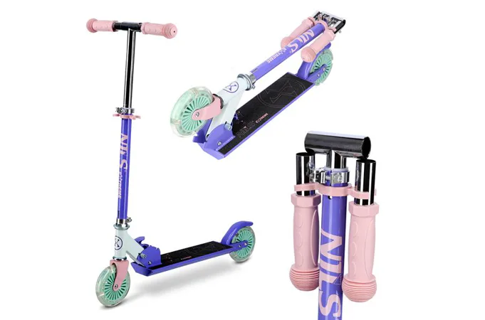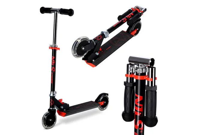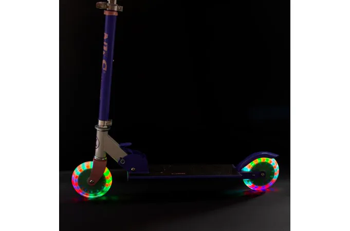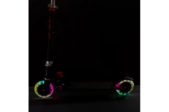 Skládací koloběžka NILS Extreme HD120L vyniká originálním designem a svítícími LED kolečky, která jsou nejen estetickým doplňkem, ale také prvkem zvyšujícím bezpečnost díky lepší viditelnosti.