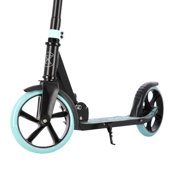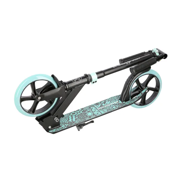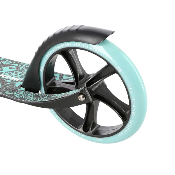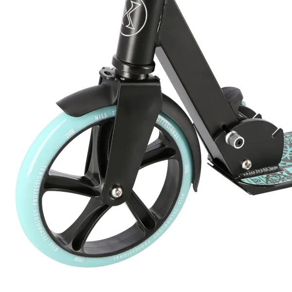 Koloběžka NILS Extreme HM2002 je vhodná pro děti i dospělé. Charakteristikou modelu HM2002 jsou blatníky na předním i zadním kole a výklopný stojánek. Skládací hliníková konstrukce je lehká, pevná a po složení není problém s koloběžkou cestovat například v autobuse, nebo tramvaji. HM2002 se také snadno vejde do kufru osobního automobilu, kde nezabere moc místa a můžete si ji tak vzít s sebou například na dovolenou.Zadní blatník slouží jako přítlačná brzda. Široká řídítka jsou opatřena gumovými rukojeťmi, které zajišťují pevný a pohodlný úchop. 200 milimetrů velká kola jsou osazena ložisky ABEC 7. Tato kombinace zajišťuje rychlou, plynulou a bezpečnou jízdu. Blatník na předním kole a skládací stojánek jsou drobnostmi, které přispívají k maximálnímu možnému komfortu z jízdy a k celkové radosti ze samotného používání modelu MH2002.