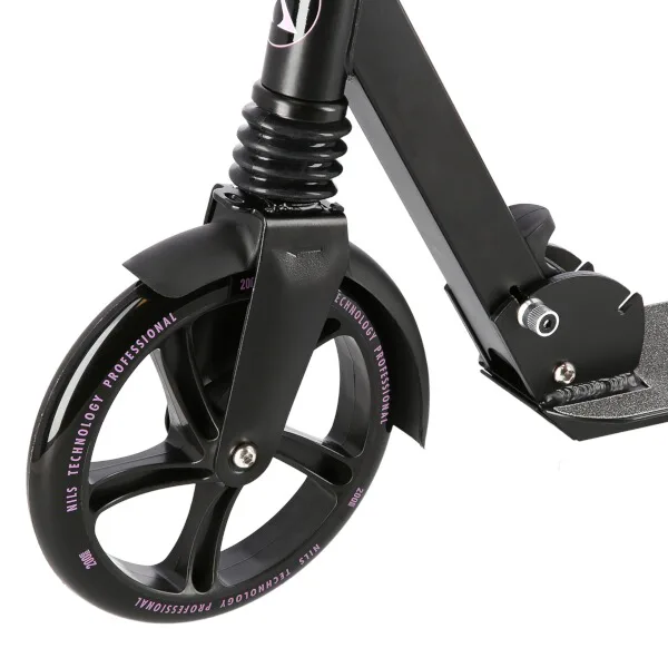 Koloběžka NILS Extreme HM2090 je vhodná pro děti i dospělé. Charakteristikou modelu HM2090 jsou blatníky na předním i zadním kole, výklopný stojánek a tlumič na předním kole.
