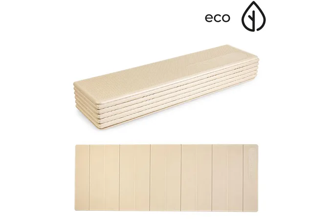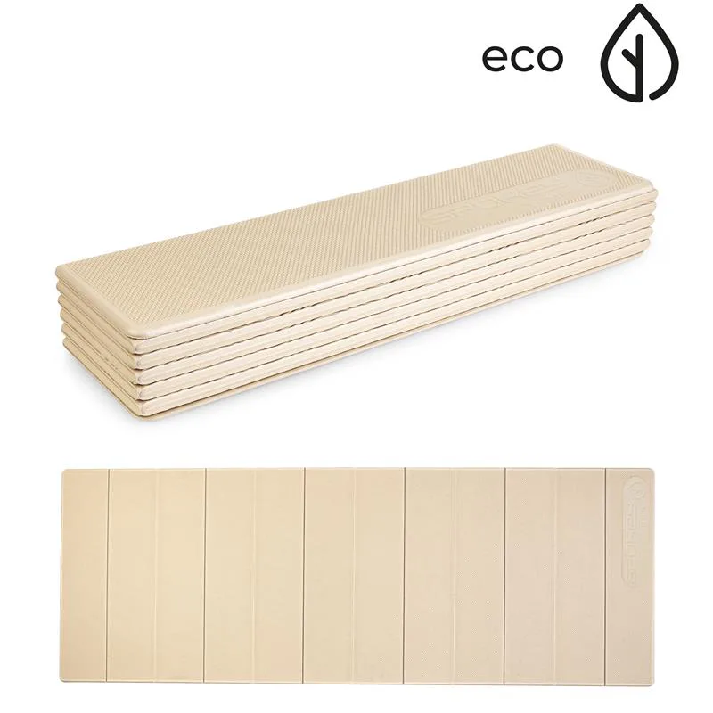 Skládací podložka na cvičení z ekologických materiálů Spokey LUCY EKO je vyrobena z 25 % z přírodních surovin (slupky rýže a bambus) a ze 75 % z TPE (termoplastického elastomeru), který dodává podložce pružnost, mechanickou odolnost a zároveň je recyklovatelný! Je velmi lehká a lze ji jednoduše složit – podložku můžete snadno složit a vzít si kdekoliv s sebou bez potřeby dalších popruhů. Poskytuje stabilitu, zajišťuje tlumení nárazů a má vynikající protiskluzové vlastnosti, které zajišťují bezpečnost během tréninku