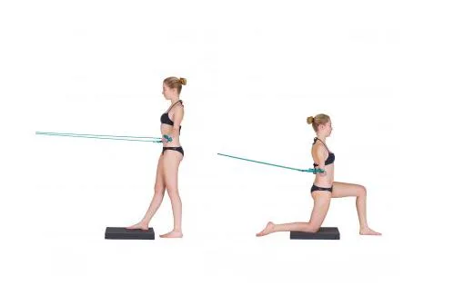 Kromě elastického lana se ke cvičení používá také balanční podložka a pro náročnější cviky pak dvojice opěrných tyčí.