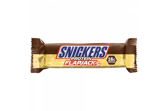 Snickers Protein Flapjack je chutná karamelovo-arašídová proteinová tyčinka politá mléčnou čokoládou, která je díky své lahodné chuti nerozeznatelná od originální čokoládové tyčinky Snickers. Rozdílem je vysoký obsah proteinu - až 16 g v tyčince a výrazně nižší obsah tuků a cukrů. Navíc tento Flapjack obsahuje komplexní sacharidy z ovesné směsi, které jsou výborným zdrojem energie. Vychutnejte si váš oblíbený karamelovo-arašídový snack bez výčitek!