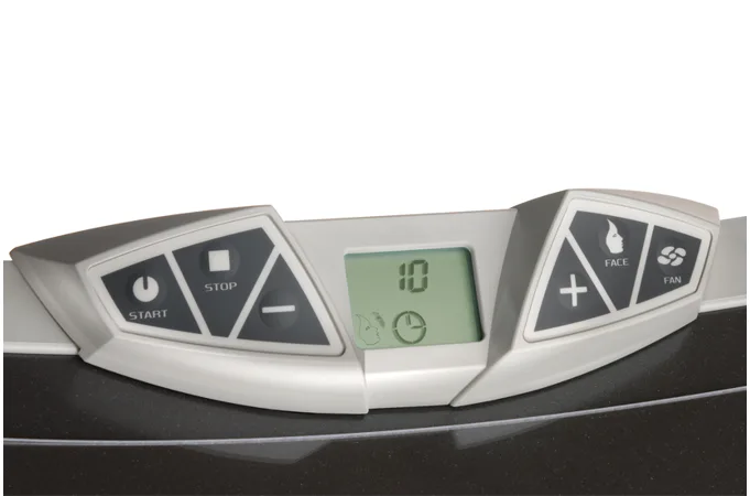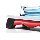 HAPRO Proline 28/1 C Lounge Red disponuje až 24 opalovacími lampami o výkonu 100 W a 4 opalovacími lampami o výkonu 80 W. Tento model je také vybaven 400 W vysokotlakým opalovacím zařízením na obličej. Tato vysokotlaká lampa poskytuje optimální opálení obličeje a také poskytuje pohodlné infračervené teplo. Pomocí analogového ovládacího panelu si můžete snadno nastavit délku opalování. Pro pohodlnější manipulaci je ovládací panel možno používat i uvnitř solária. Solárium je navíc vybaveno chladícím ventilátor pro svěží pocit při opalování. (Chladící ventilátor lze zapnout a vypnout přímo uvnitř solária)
