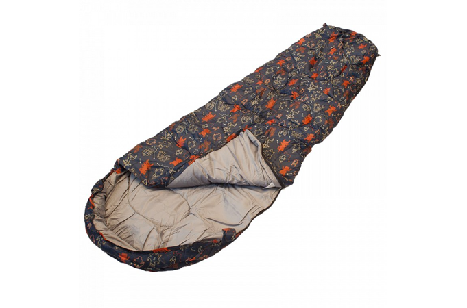Spací pytel YATE HIGHLANDER Robot Print tvaru mumie pro děti ve věku 5 až 10 let. Dodáváno včetně obalu s nastavitelnými popruhy, který je možno nosit na zádech jako batůžek.