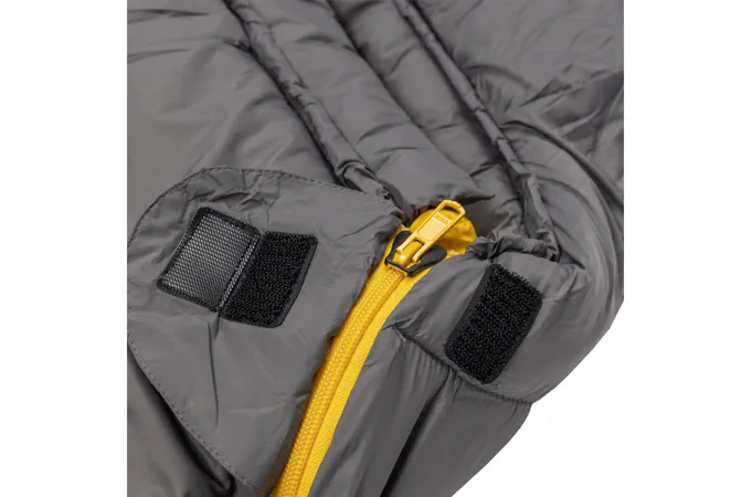 Zapínání: spacák je vybaven značkovým zipem YKK se speciálním plastovým chráničem, který zabraňuje vniknutí látky do jezdce a samovolnému rozepínání. U hlavy je zip ještě zajištěn klopou na suchý zip, která zamezuje samovolnému otevření zipu.