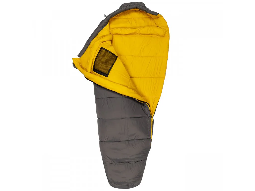 Nylon 380T: hustě tkaná příze z lehkého, ale pevného umělého vlákna. Nylon je příjemný na dotek, odolný proti poškození a propouští odpařovanou vlhkost. Díky úpravě DWR poskytuje částečnou ochranu proti vodě, hlavně proti kapkám sražené vody ve stanu, a díky tomu spacák rychle usychá.