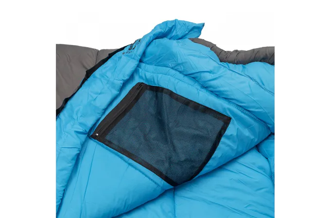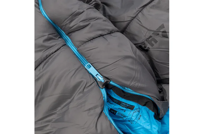 Zapínání: spacák je vybaven značkovým zipem YKK se speciálním plastovým chráničem, který zabraňuje vniknutí látky do jezdce a samovolnému rozepínání. U hlavy je zip ještě zajištěn klopou na suchý zip, která zamezuje samovolnému otevření zipu.