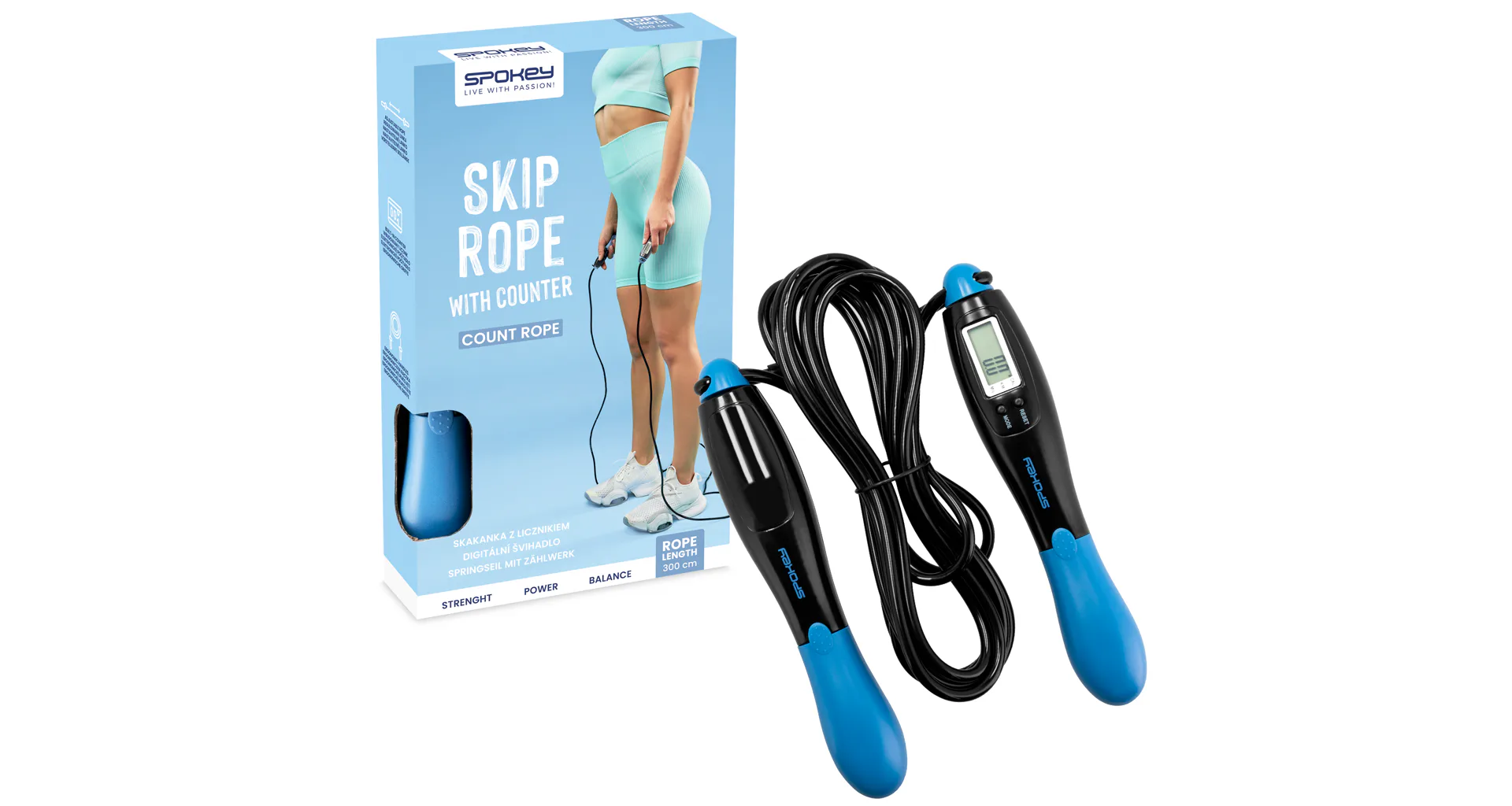 Spokey COUNT ROPE se vyznačuje integrovaným digitálním počítadlem, se kterým nemusíte počítat počet přeskoků! Švihadlo má navíc funkci počítání kalorií. Díky tomu se můžete zaměřit na správný trénink, který bude se švihadlem maximálně pohodlný, příjemný a přizpůsobený vašim potřebám. Jedná se o model s nastavitelnou délkou lanka. Lanko stačí protáhnout speciálně připravenými otvory, aniž byste potřebovali další nářadí.