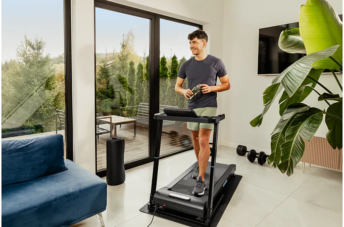 Běžecký pás ELIAS umožňuje komplexní kardio trénink v domácím prostředí. Díky vestavěnému modulu Bluetooth můžete běžecký pás snadno připojit k externím zařízením a využívat další tréninkové aplikace. Díky protiskluzovému povrchu pásu je jeho používání pohodlné a bezpečné a transportní kolečka navíc usnadní jeho přepravu a skladování. Pokročilý LED displej zajistí, že trénink na běžeckém pásu ELIAS bude nejen efektivní, ale také snadný a pohodlný.