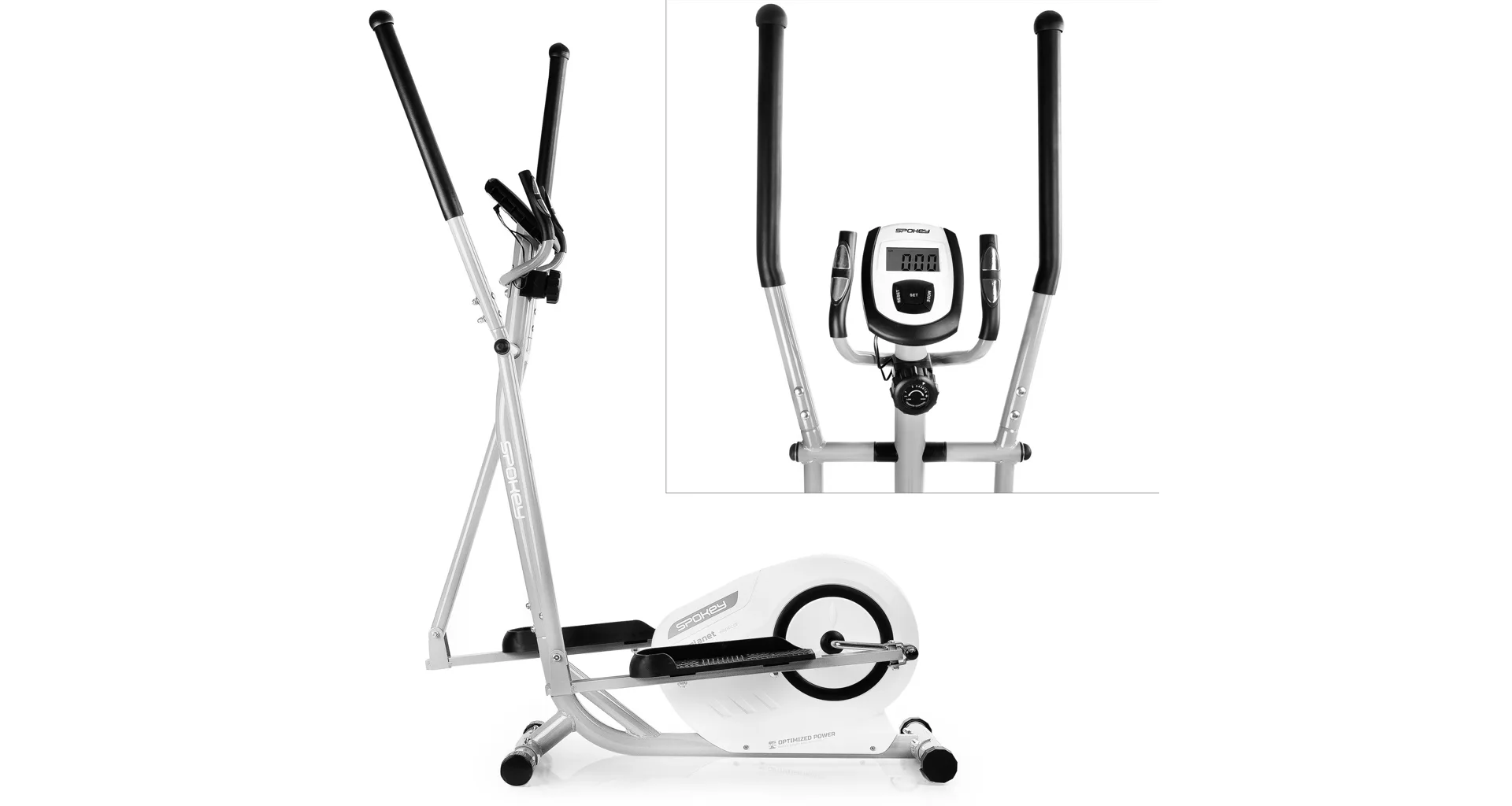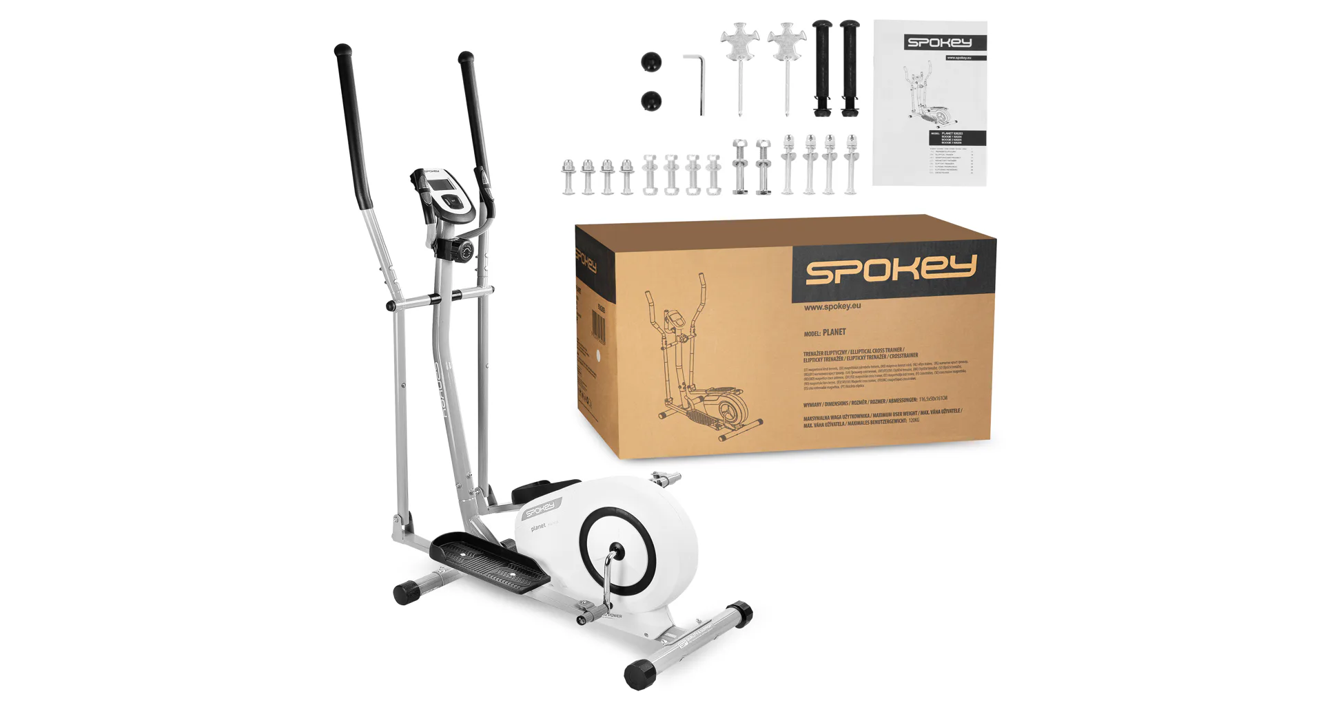 Eliptický trenažér Spokey PLANET je ideální volbou pro domácí kondiční trénink. Díky trenažéru můžete doma velmi efektivně procvičit celé tělo. Během tréninku je zapojena jak dolní, tak i horní část těla. Cvičení na elipticalu odpovídá cvičení na rotopedu, ale díky jeho konstrukci jsou méně namáhány klouby. Proto jsou stroje vhodné i pro seniory a osoby s nadváhou. Eliptický trenažér Spokey PLANET je určen pro ty, kteří se starají o své zdraví a současně hledají komfort, kvalitu a ocení elegantní vzhled.