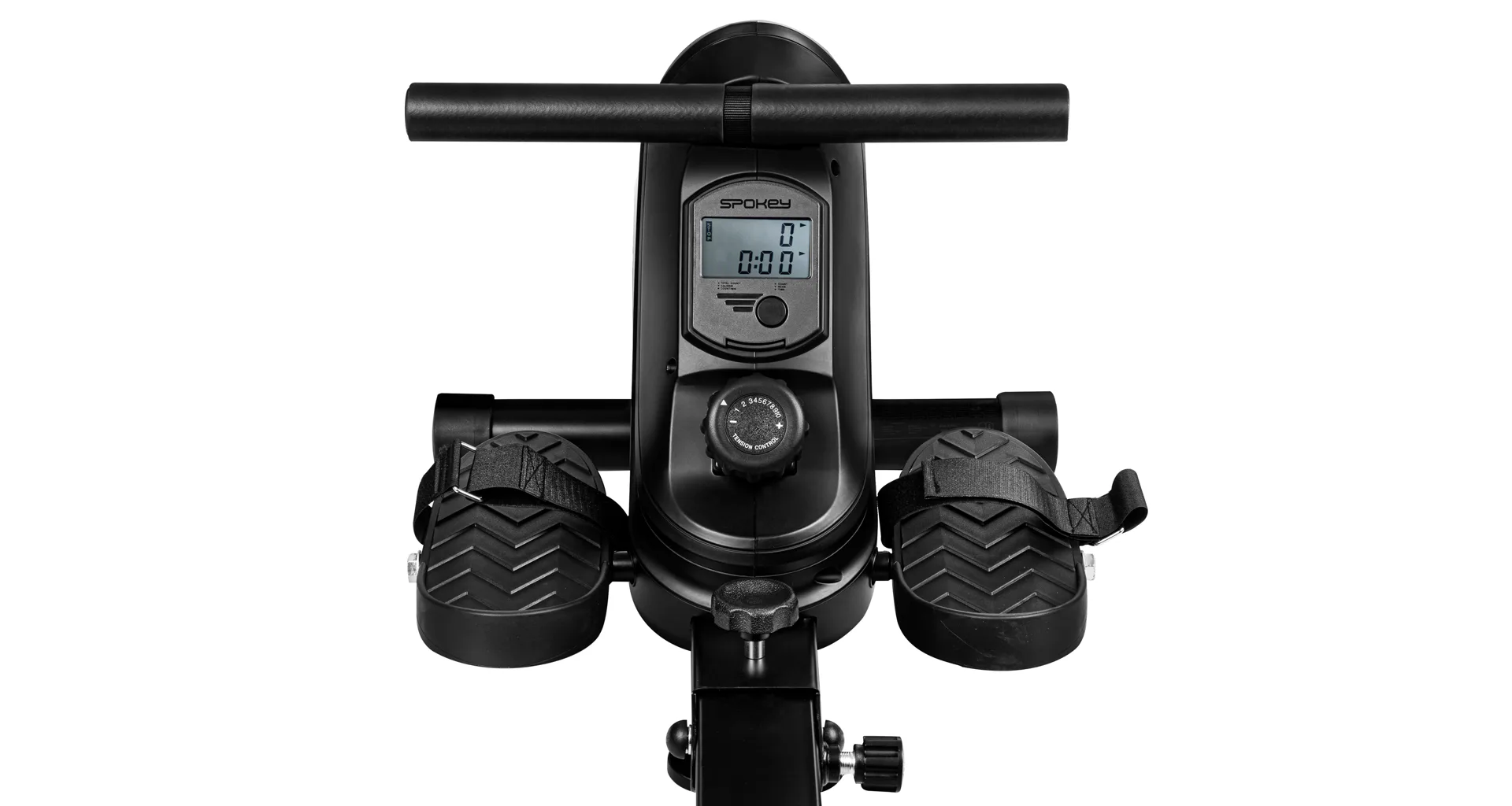 Spokey Remus je veslovací trenažér s magnetickou brzdou, která zajišťuje tichý a plynulý chod stroje i při maximálním zatížení. Zátěž se nastavuje manuálně pomocí otočného regulátoru v 10 stupních.
