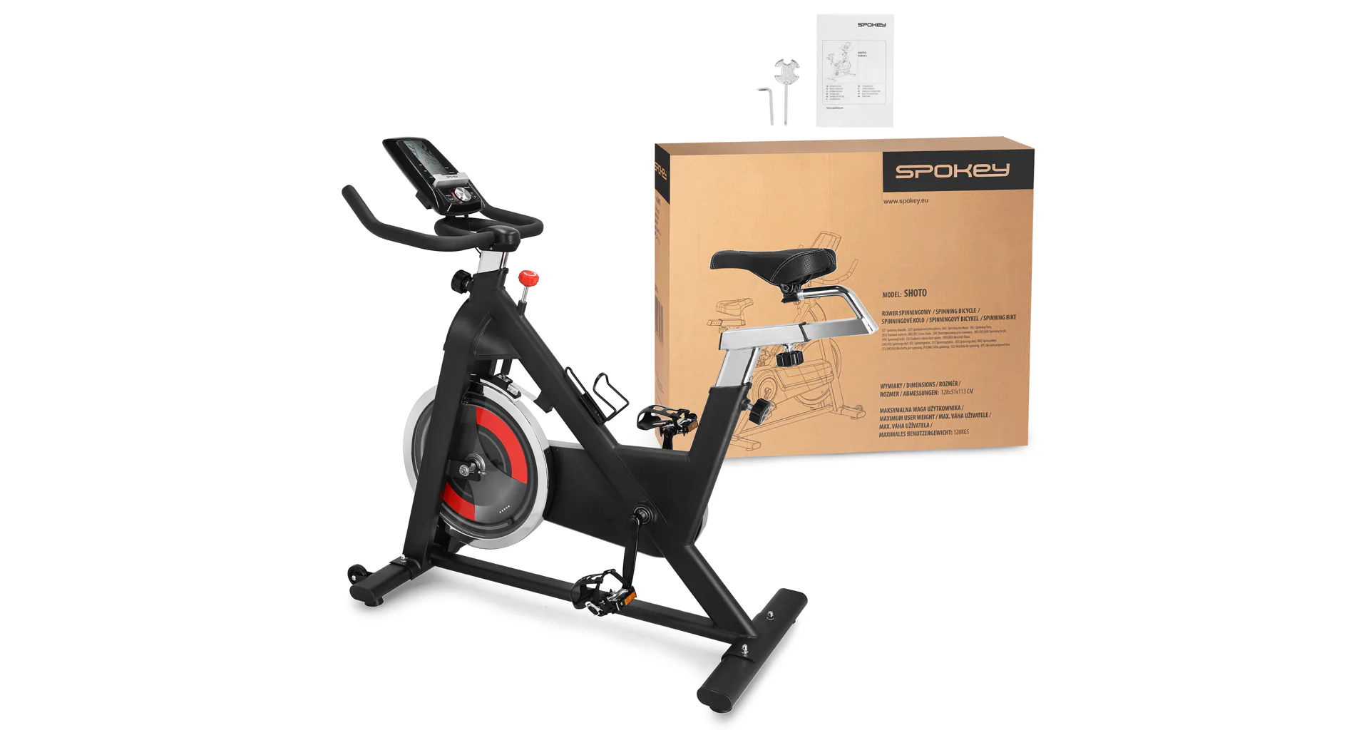 Spinningové kolo SPOKEY SHOTO je kvalitní cyklotrenažér určený pro intenzivní domácí trénink. Kolo bylo vytvořeno s myšlenkou na uživatele, kteří hledají nejvyšší kvalitu a moderní vzhled fitness vybavení. Kolo si přizpůsobíte vašim potřebám díky možnosti nastavení výšky řídítek a sedadlo nastavitelné vertikálně i horizontálně! Maximální nosnost kola je 120 Kg.