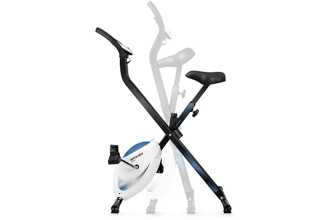 Skládací rotoped XFIT je kombinací minimalismu s praktickými řešeními. Po tréninku můžete rotoped snadno složit a uložit na vhodném místě. Má nastavitelnou výšku sedátka, což umožňuje nastavit si co nejvhodnější vzdálenost od pedálů. Protiskluzová struktura pedálů a upevňovacích pásků zvyšují bezpečnost a pohodlí uživatele během jízdy na rotopedu.