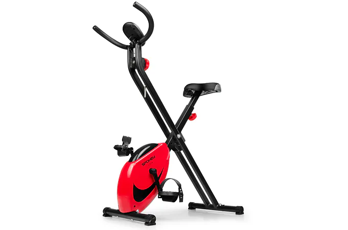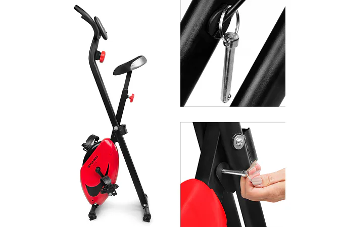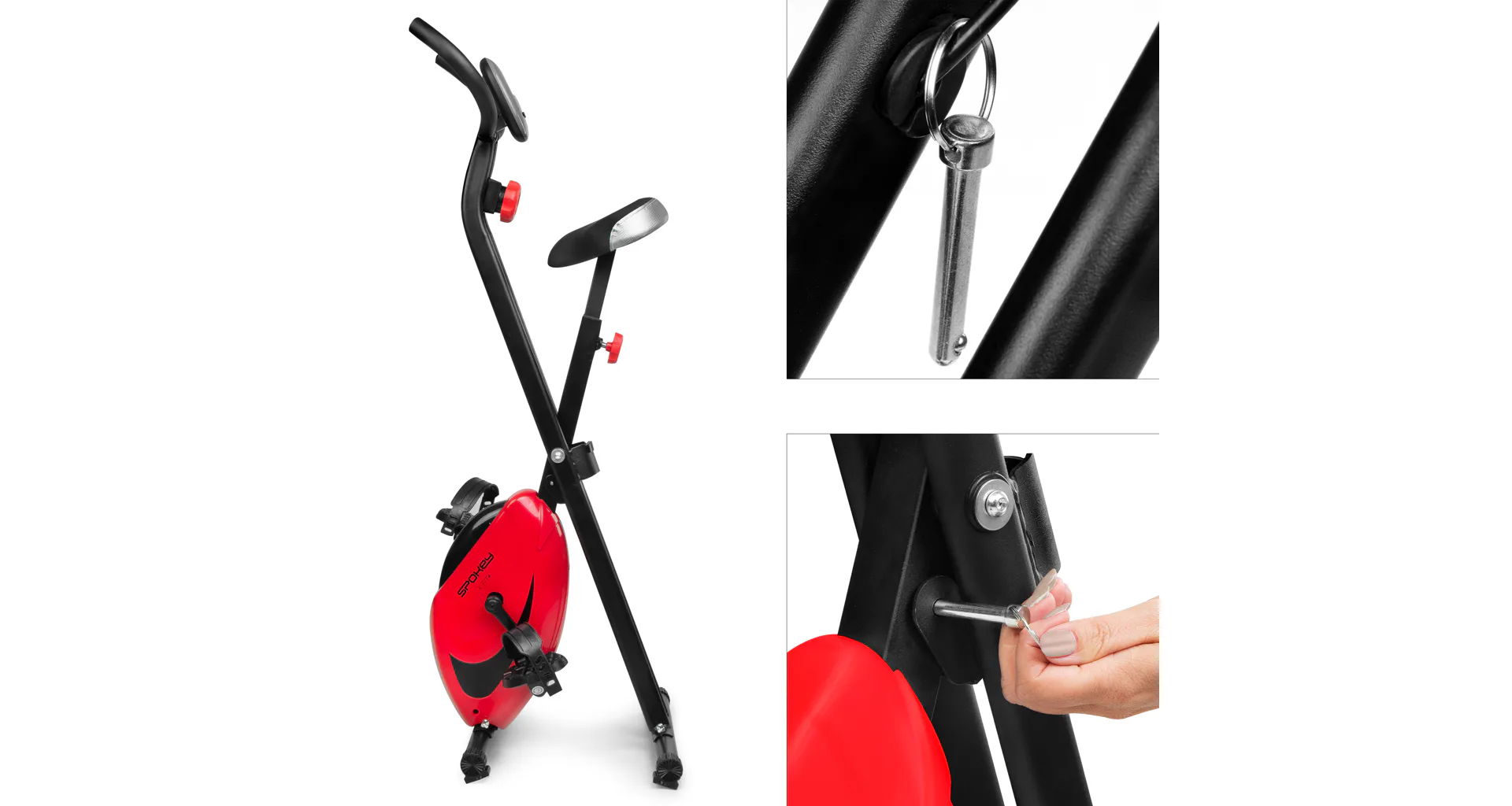 Skládací rotoped XFIT+ je kombinací minimalismu s praktickými řešeními. Po tréninku můžete rotoped snadno složit a uložit na vhodném místě. I když venku bude nepříznivé počasí, vy si můžete pomocí rotopedu stále udržovat skvělou formu, a to za poslechu své oblíbené hudby. Navíc má nastavitelnou výšku sedátka, což umožňuje nastavit si co nejvhodnější vzdálenost od pedálů. Protiskluzová struktura pedálů a upevňovacích pásků zvyšují bezpečnost a pohodlí uživatele během jízdy na rotopedu. Rukojeti jsou navíc potaženy neoprenem, takže v průběhu cvičení z nich ruce nekloužou.