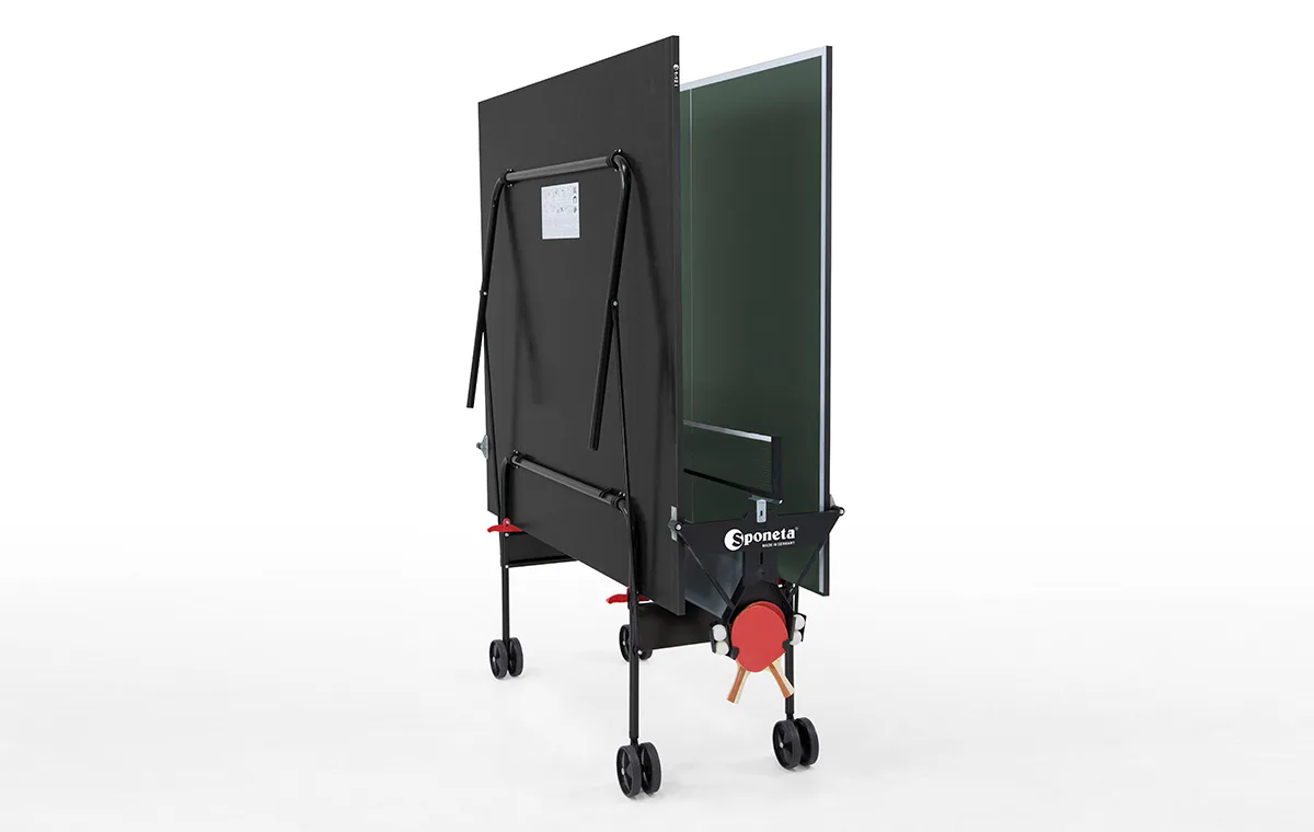 Stůl na stolní tenis Sponeta S1-12i je možné jej snadno složit bez nutnosti demontovat držák na síťku se síťkou. Stůl je určený pro rekreační účely.