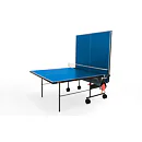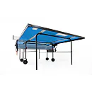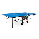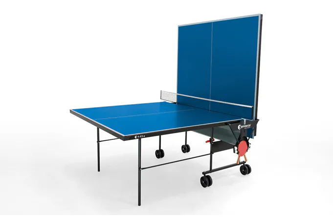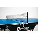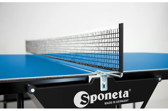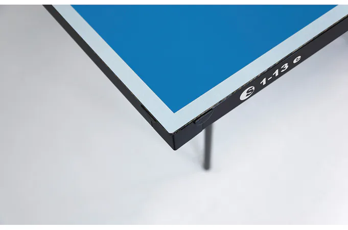 Stůl na stolní tenis Sponeta S1-13e - modrý, venkovní provedení. Pozinkovaný rám spolu se 4 mm silnou plastovou deskou (melamin), která má vlastnosti klasické dřevěné desky, umožňují stálé umístění stolu venku (přesto doporučujeme pro prodloužení životnosti nechávat stůl venku pouze od jara do podzimu - sníh a led mohou stůl mechanicky poškodit) bez ohledu na momentální klimatické podmínky.