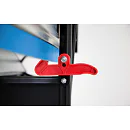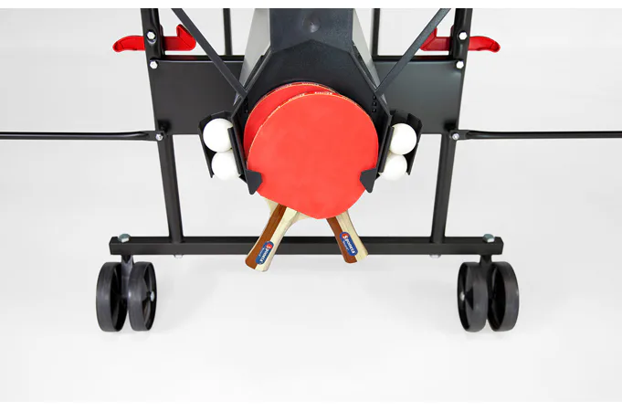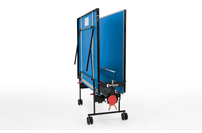 Stůl na stolní tenis Sponeta S1-13e je možné složit, aniž by bylo nutné demontovat držák na síťku se síťkou. Kolečka umožňující pojezd usnadňují manipulaci se stolem.