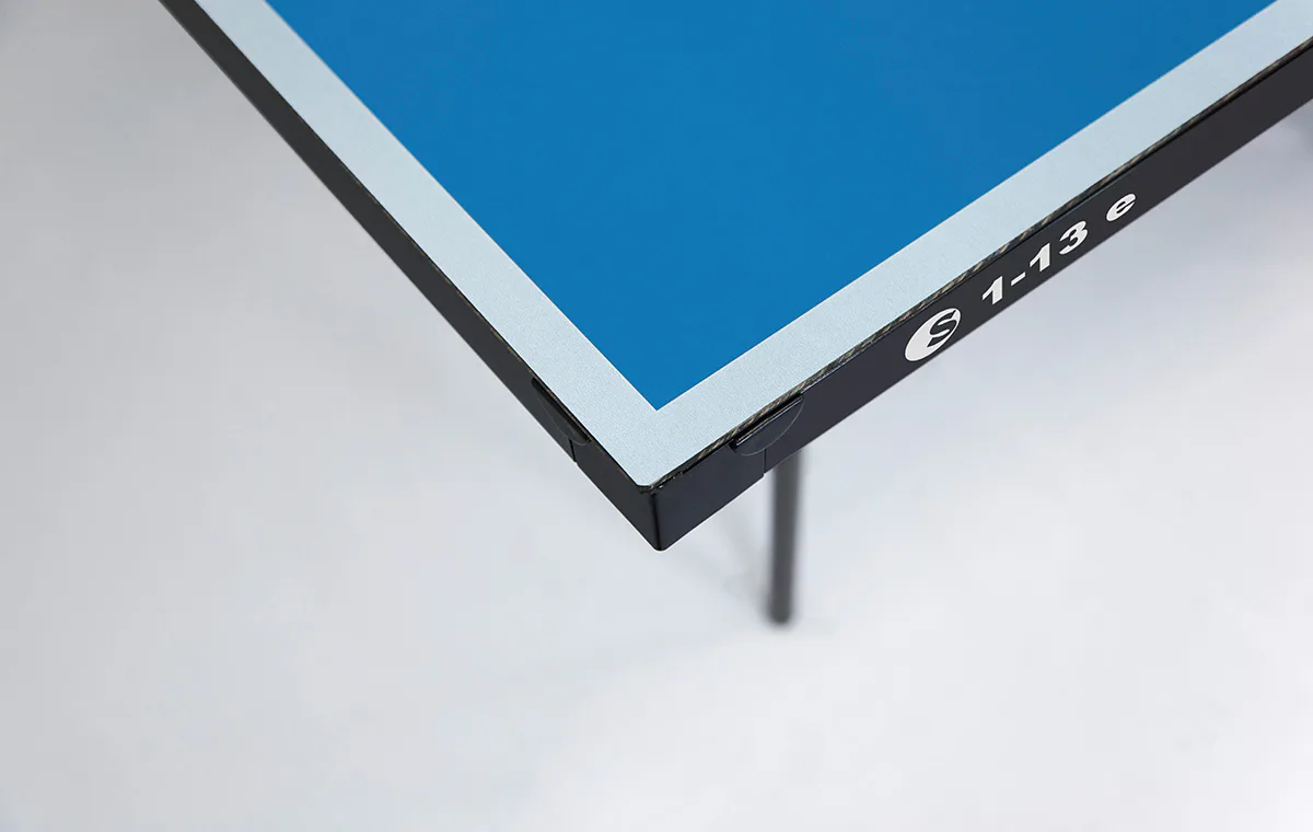 Stůl na stolní tenis Sponeta S1-13e - modrý, venkovní provedení. Pozinkovaný rám spolu se 4 mm silnou plastovou deskou (melamin), která má vlastnosti klasické dřevěné desky, umožňují stálé umístění stolu venku (přesto doporučujeme pro prodloužení životnosti nechávat stůl venku pouze od jara do podzimu - sníh a led mohou stůl mechanicky poškodit) bez ohledu na momentální klimatické podmínky.
