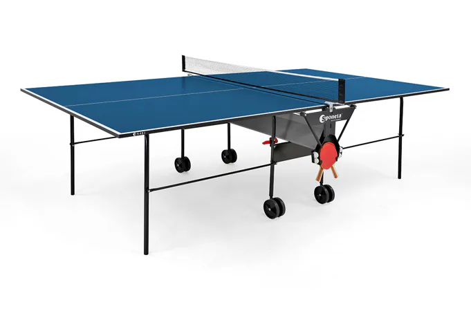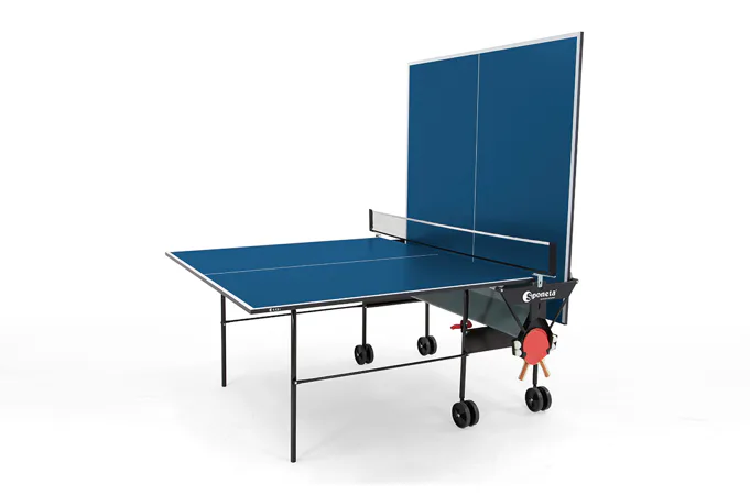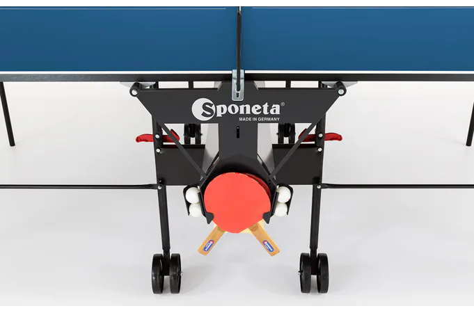 Stůl na stolní tenis Sponeta S1-13i s pojezdem, síťka, držák na síťku je součástí vybavení stolu. Rekreační stůl s 19 mm silnou deskou a kovovými výztuhami je určený pro vnitřní použití. Odpovídá nové evropské bezpečnostní normě. Konstrukce stolu je tvořena trubkovým profilem o průměru 25 mm.